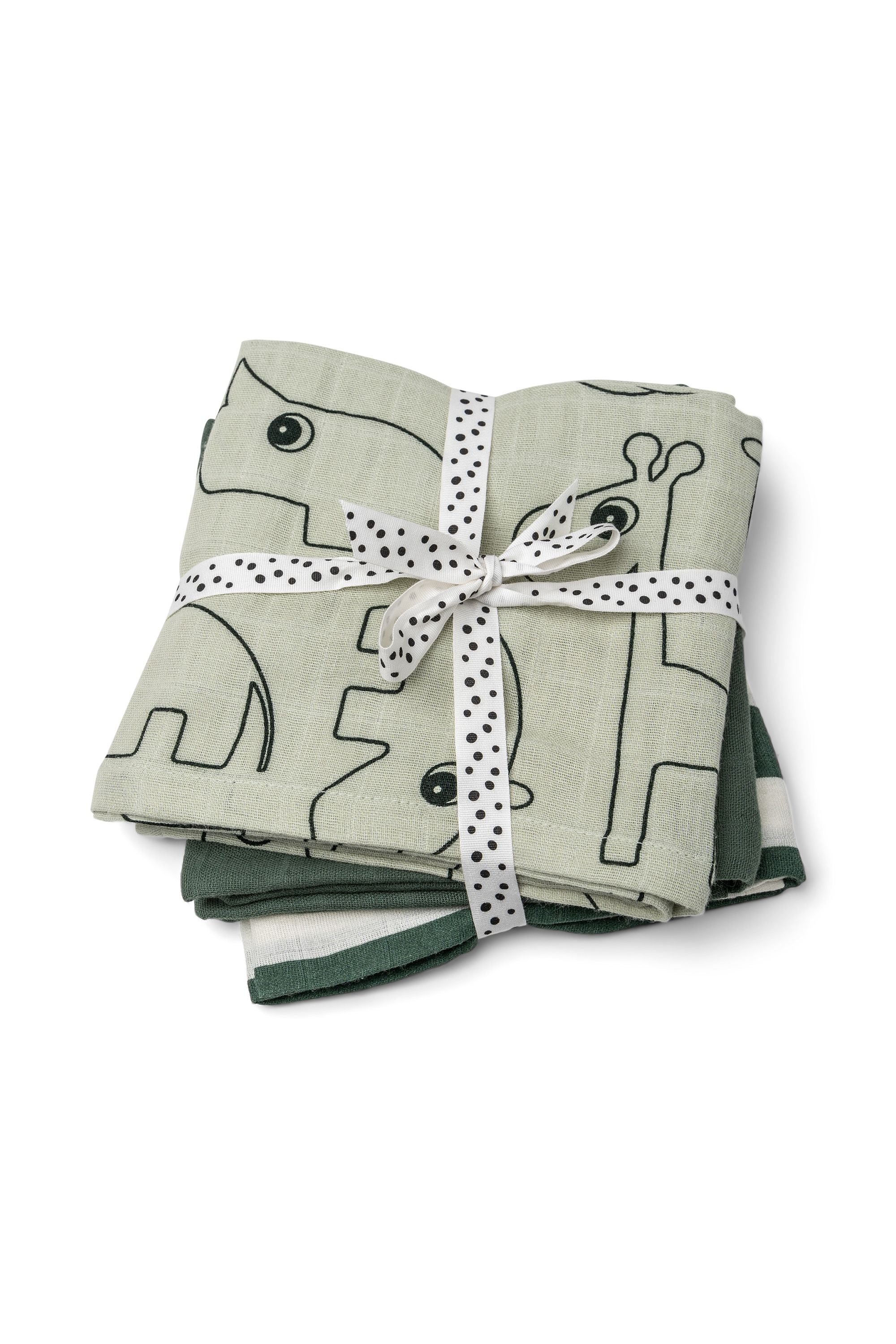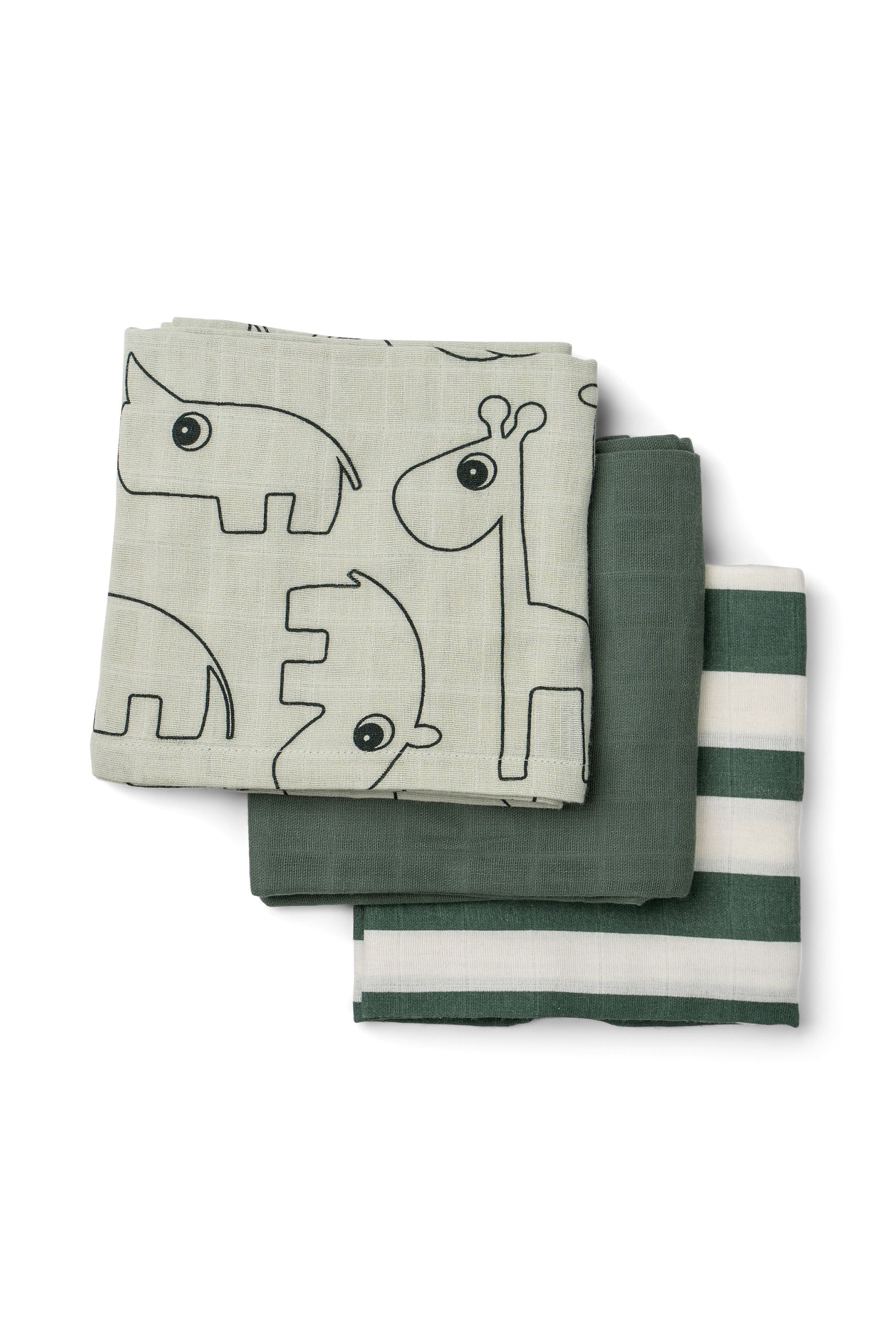 Burp cloth GOTS 3-pack deer friends Green
