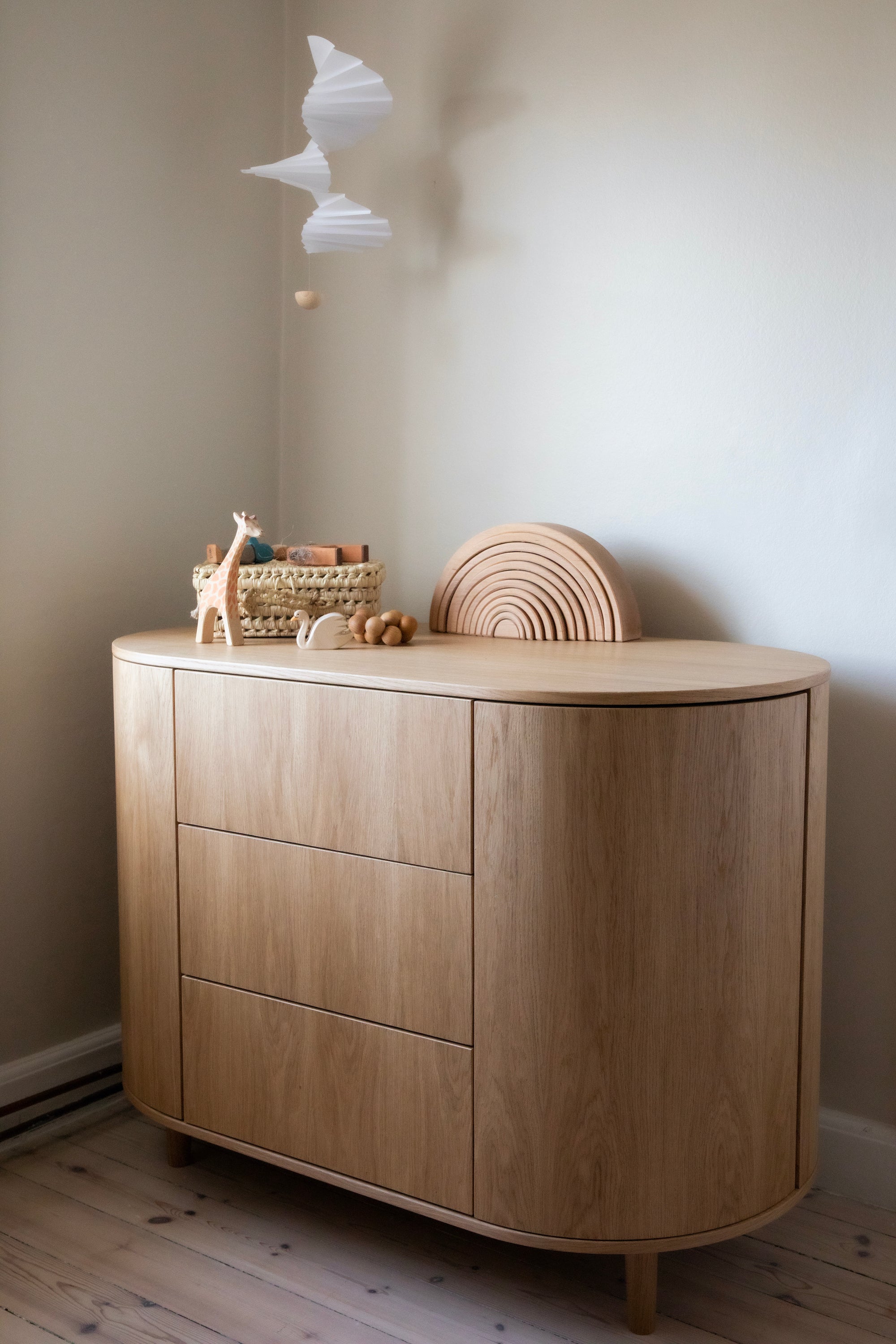 De Kai commode van KAS Kopenhagen is een unieke kast met een tijdloos ontwerp. Dankzij de taps toelopende poten en onzichtbare schroeven is dit meubel een prachtige blikvanger in elke kamer. De commode biedt een ideale opbergoplossing voor alle verzorgingsspullen, speelgoed en accessoires. Het optionele verschoonblad is eenvoudig te monteren en later te verwijderen, waardoor je jarenlang plezier hebt van deze duurzame kast. De verf op waterbasis is getest en goedgekeurd volgens de Europese speelgoedwetgeving.