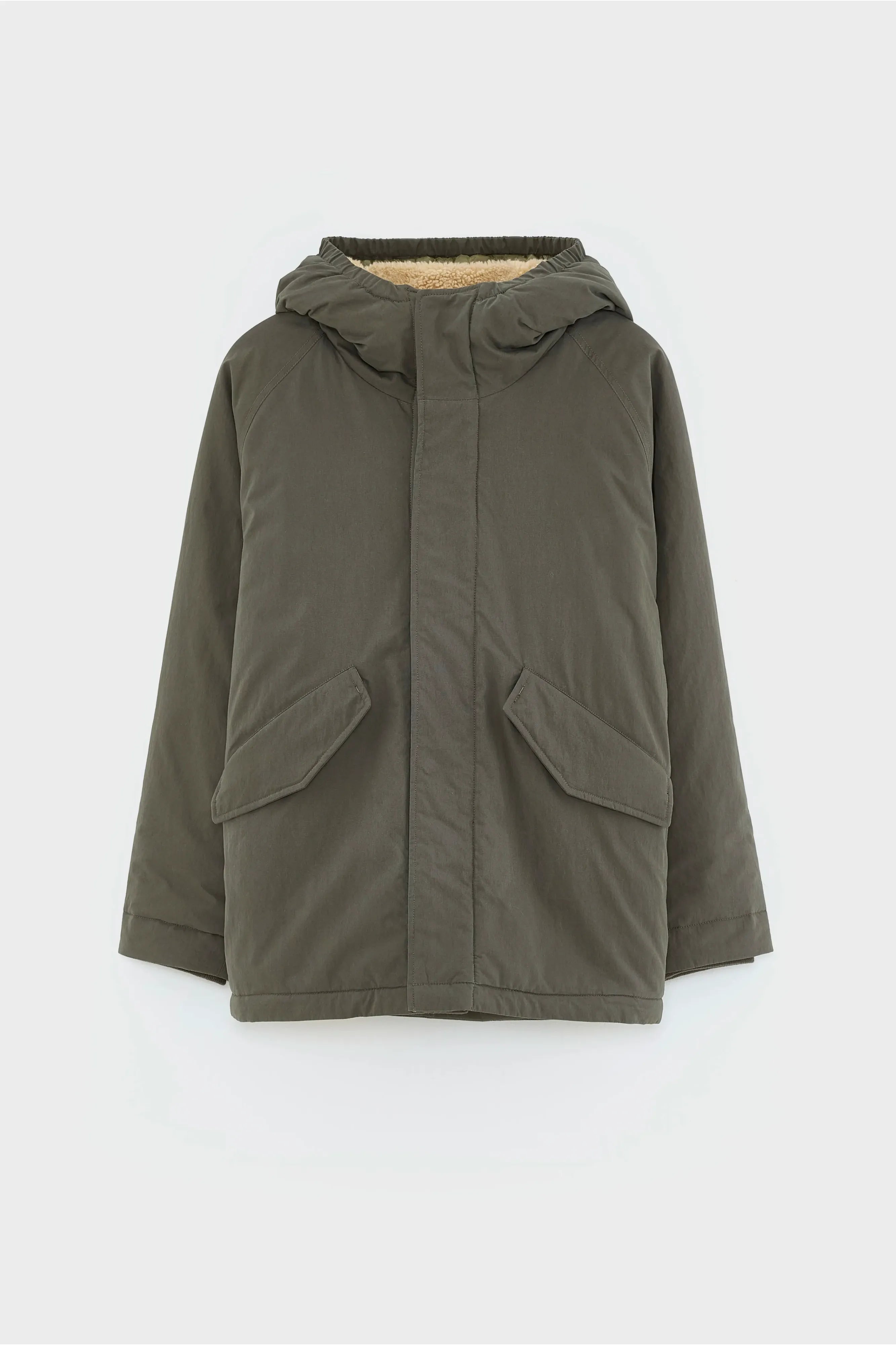 Ontmoet de Hugues jas van Bellerose! Deze lange, gewatteerde jas in de kleur Beluga (khaki groen) is super warm en knus dankzij de zachte teddy voering in de body en mouwen. De capuchon heeft een gewatteerde nylon voering, perfect voor avonturen in elk seizoen. Met de rits en drukknopen aan de voorkant en handige klepzakken is hij klaar voor speelplezier. Blijf lekker warm en stijlvol!
