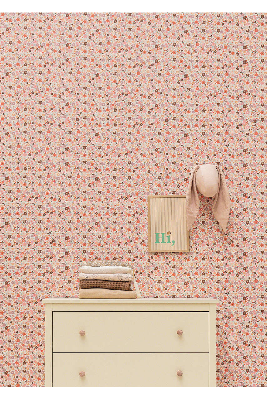 Breng vrolijkheid in de kinderkamer met Behang Joy Roze van Bibelotte! Dit lieve behang heeft een frisse bloemenprint in roze, oranje en groen op een crèmekleurige basis. Het is perfect om een lichte en blije sfeer te creëren waar je kindje heerlijk kan spelen en dromen. Supermakkelijk aan te brengen en van hoogwaardige kwaliteit, voor eindeloos plezier!