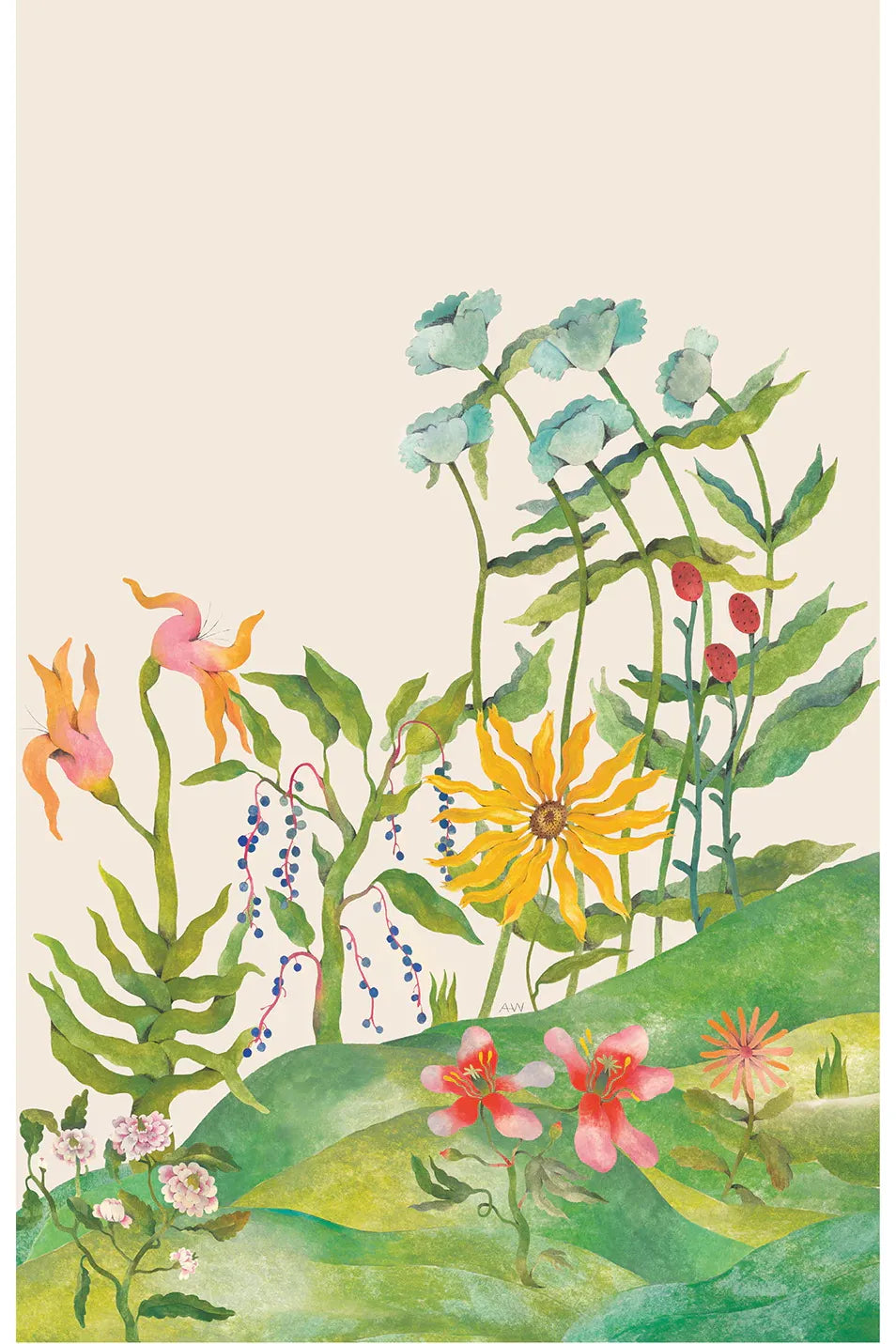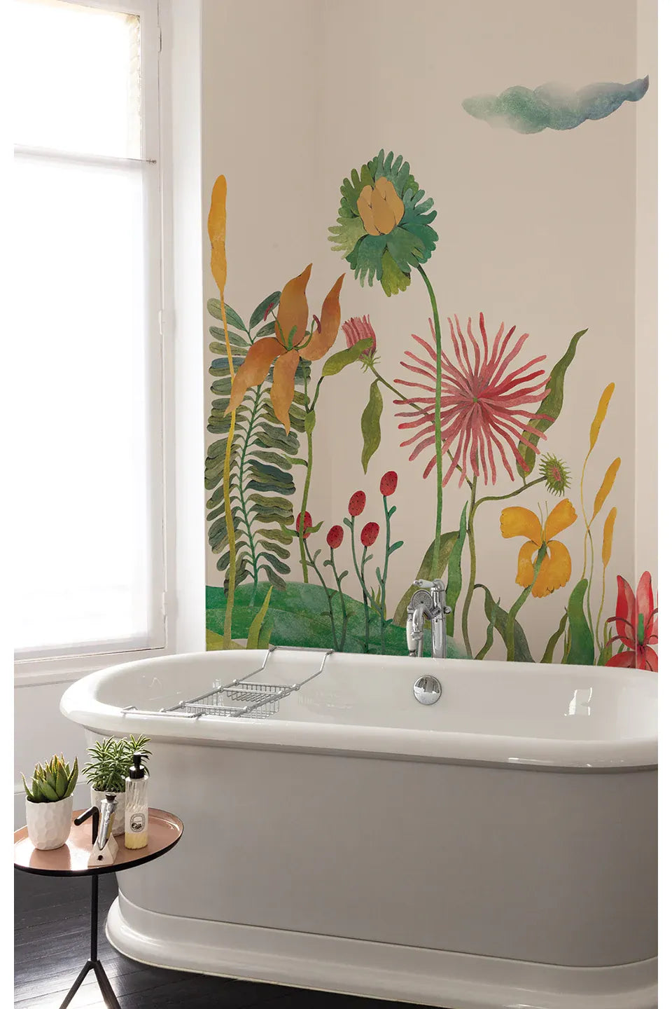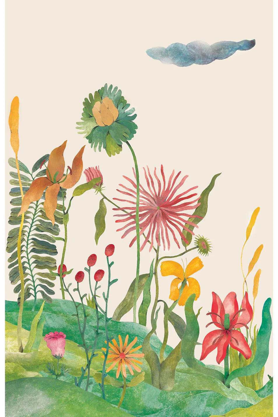 Breng een magisch bloemenparadijs naar de kinderkamer met het Behang Audrey Mural van Bien Fait! De Amerikaanse kunstenares Audrey Helen Weber toverde echte en denkbeeldige bloemen om tot een unieke, vrolijke en licht psychedelische tuin die de kamer opfleurt en verrast. Dit prachtige vliesbehang is met liefde en respect voor het milieu gemaakt, met PVC-vrij en FSC-gecertificeerd papier en eco-inkten. Zo creëer je een dromerige én verantwoorde sfeer waar je kleintje heerlijk kan wegdromen.
