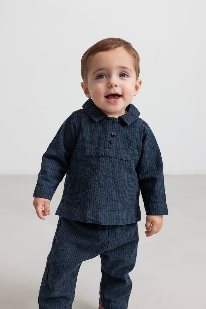 Ontdek de Tovas! Dit charmante kledingstuk van MarMar Copenhagen, bekend om hun klassieke en duurzame kinderkleding, is uitgevoerd in een donkerblauwe streep chambray. Het perfecte basisstuk voor de garderobe van je kleintje. Gemaakt om lang mee te gaan, zodat je kind er heerlijk in kan spelen én er stijlvol uitziet. Een liefdevol en tijdloos design dat bij elke gelegenheid past!