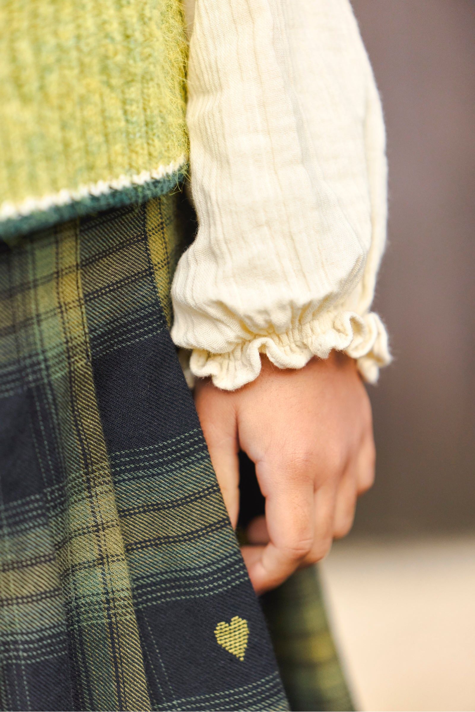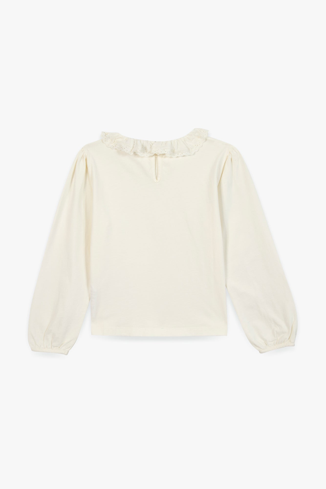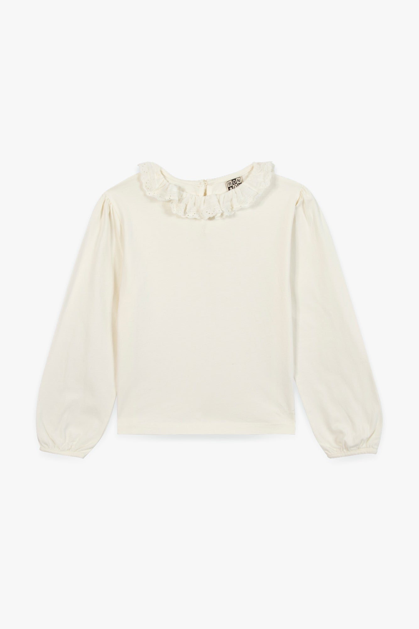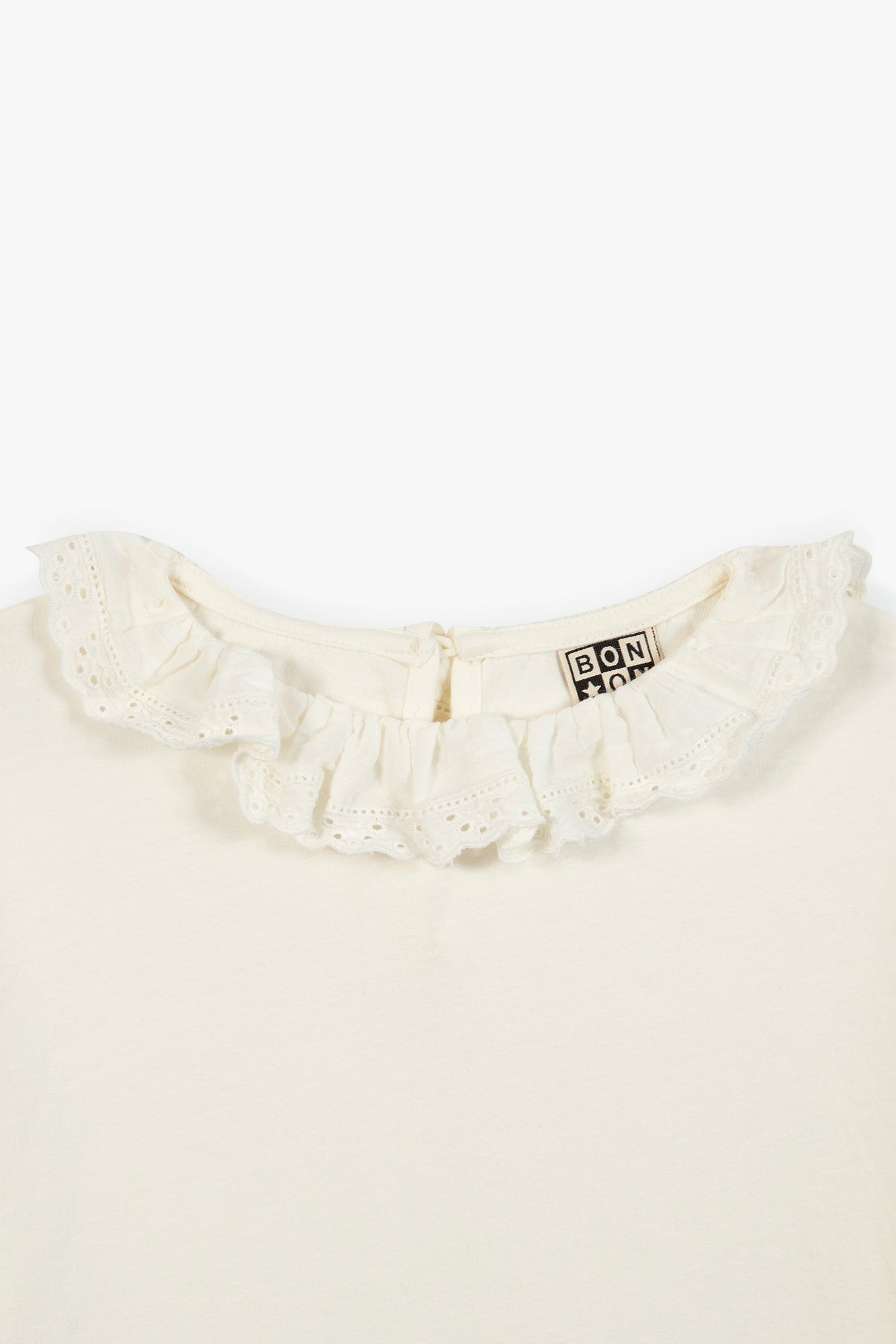 Ontdek het Miel t-shirt uit de "New Barn" collectie van BONTON in het charmante Ecru. Perfect voor kleine, stoere meiden! Dit shirt met lange mouwen en een openstaand, gegolfd kraagje geeft elke outfit een vleugje landelijke elegantie. Gemaakt van 100% katoen, garandeert het zachtheid en alle bewegingsvrijheid die de kleintjes nodig hebben. Een klassieker die niet in de garderobe mag ontbreken.