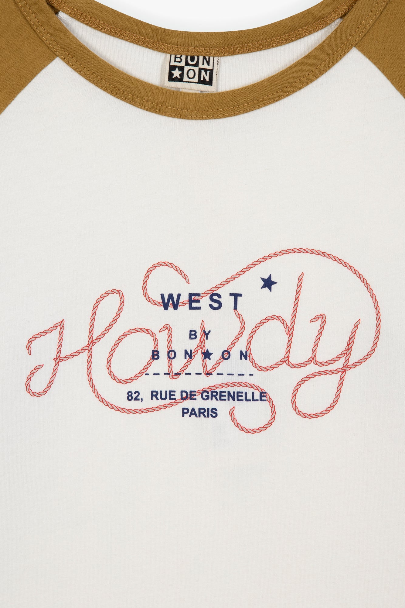 Laat je kleintje de wildernis ontdekken in dit supercoole Tipi Howdy shirt van BONTON! Dit off-white shirt met vrolijke opdruk is perfect voor avontuurlijke jongens. Gemaakt van 100% zacht katoen, ideaal voor spelen en ontdekken. Met dit Retro item is elke dag een feestje. Klaar voor een dag vol plezier?