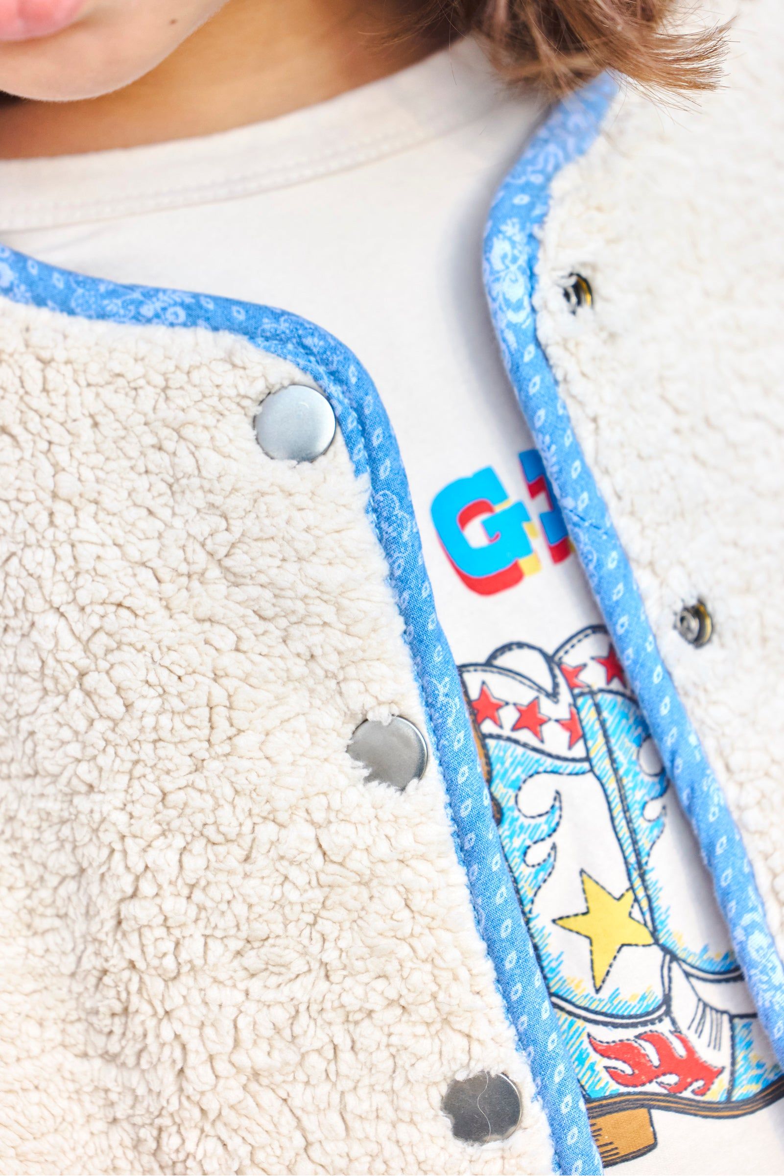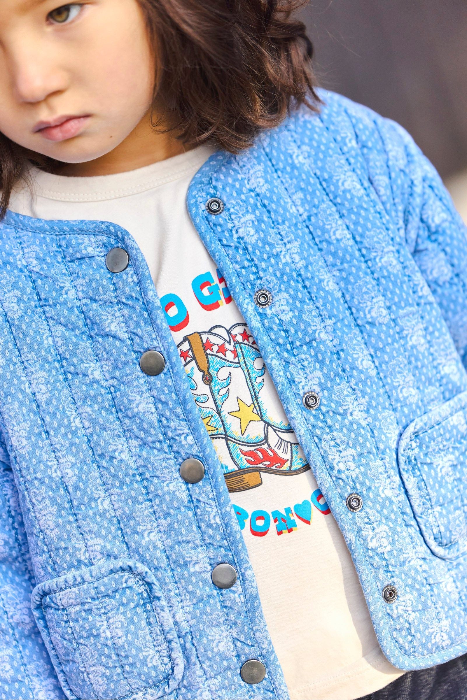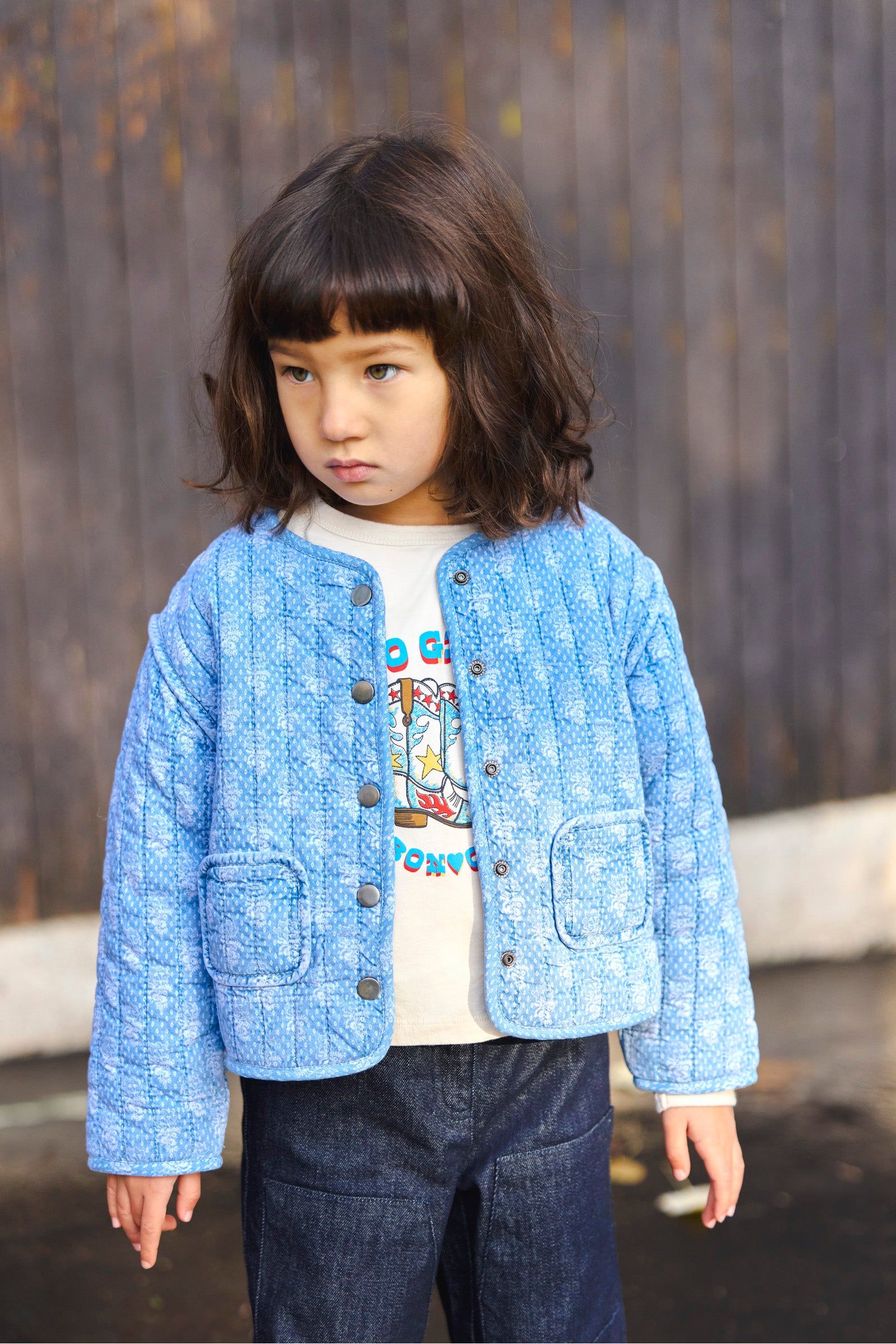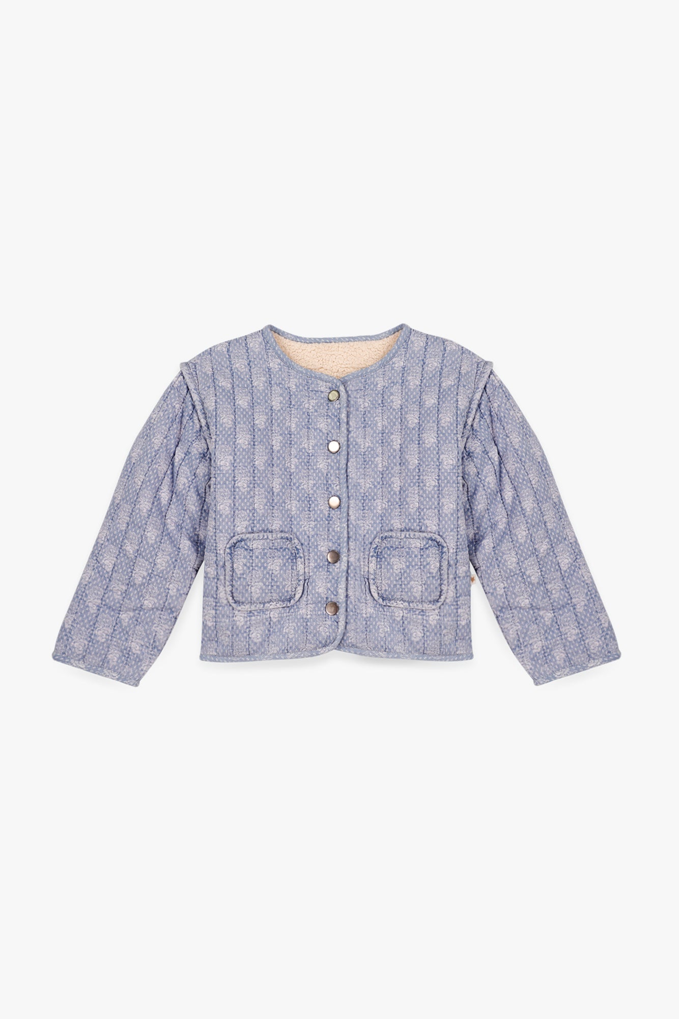 Dit is de superleuke Veste Louane van het Parijse merk BONTON, perfect voor jouw kleine avonturier! Deze gewatteerde jas in vintage blauw is gemaakt van 100% katoen en 100% polyester. Met zijn klassieke, maar toch retro look en handige opgestikte zakken is deze jas ideaal voor zowel lente- als herfstdagen. Laat je kind stralen in deze heerlijke jas die comfort en stijl combineert. Een must-have voor elke speelse kindergarderobe!