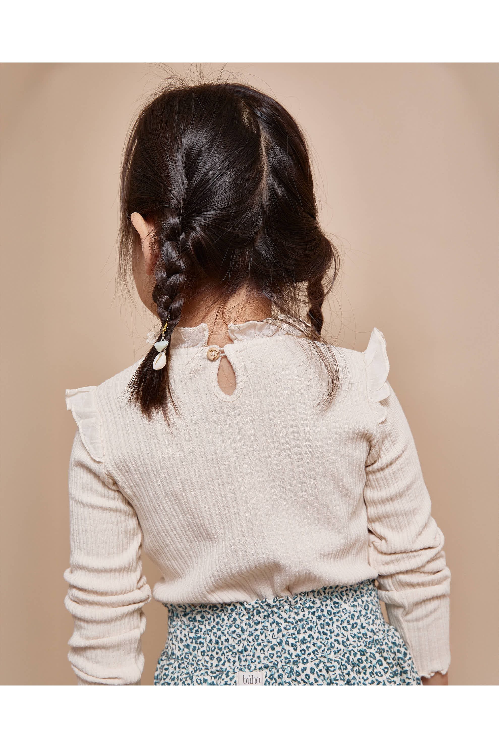 Dit Warm Rib T-Shirt in prachtig Burgundy van Búho is perfect voor de koudere dagen. Het is gemaakt van een zachte geribbelde stof (97% katoen) met een vleugje stretch voor extra speelcomfort. De schattige ruches van voile op de schouders en kraag geven dit shirt een lieve en klassieke look. Bovendien heeft het een druppelvormige opening aan de achterkant. Een heerlijk warm en stijlvol item voor jouw kleine meid dit Herfst/Winter seizoen!