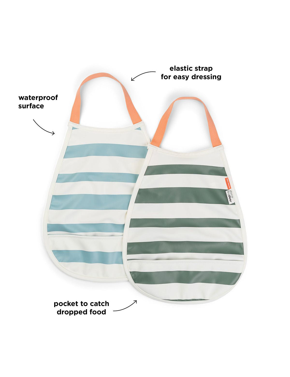Pull-over bib 2-pack Stripes Blue/Green