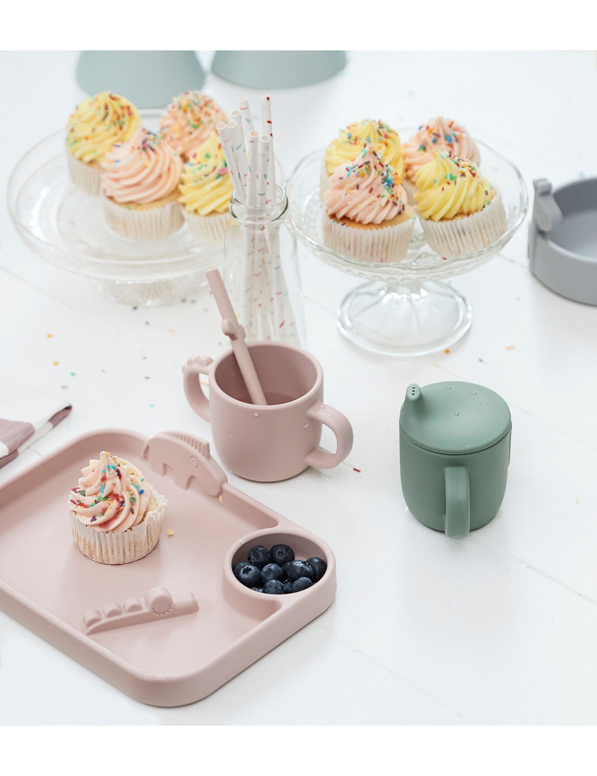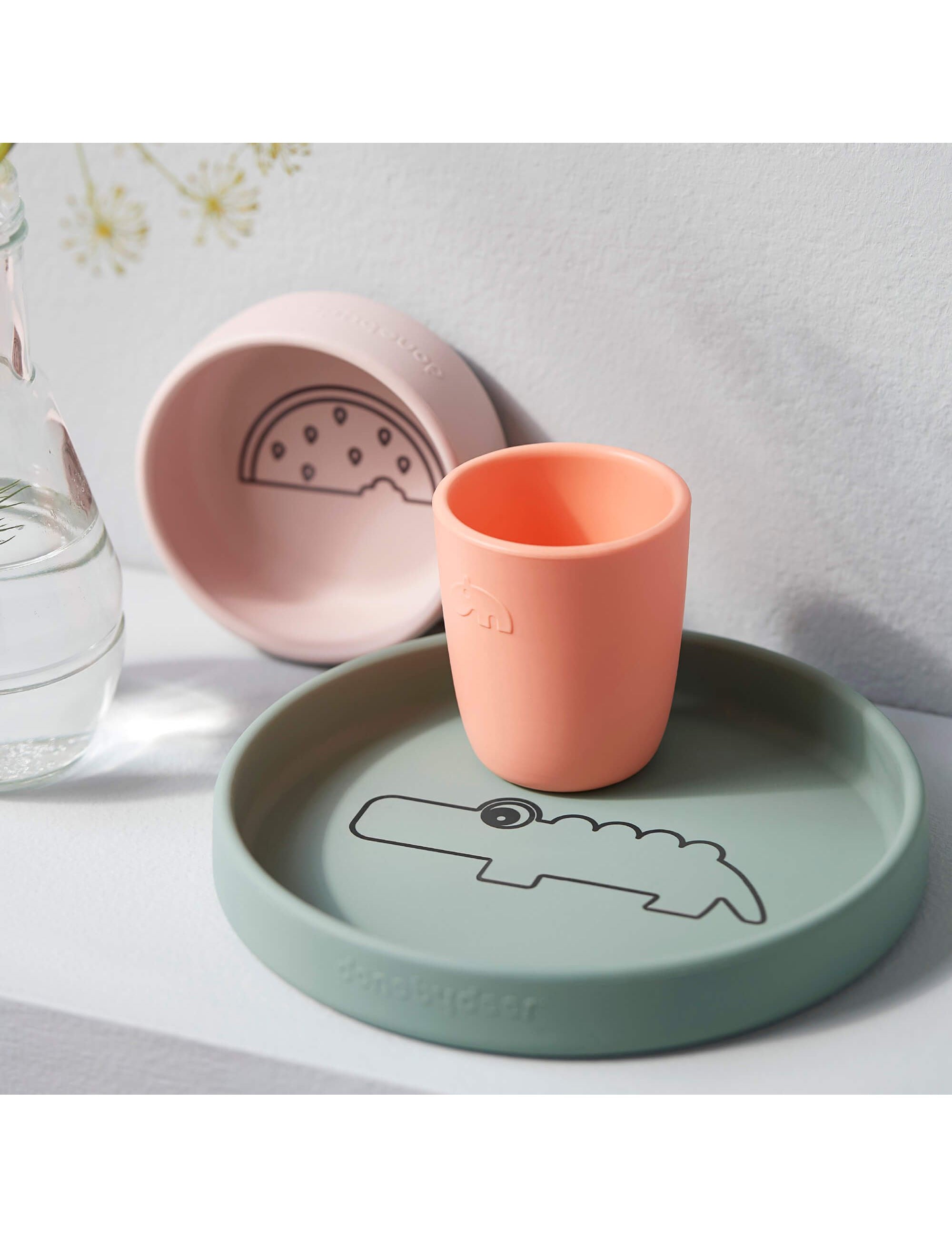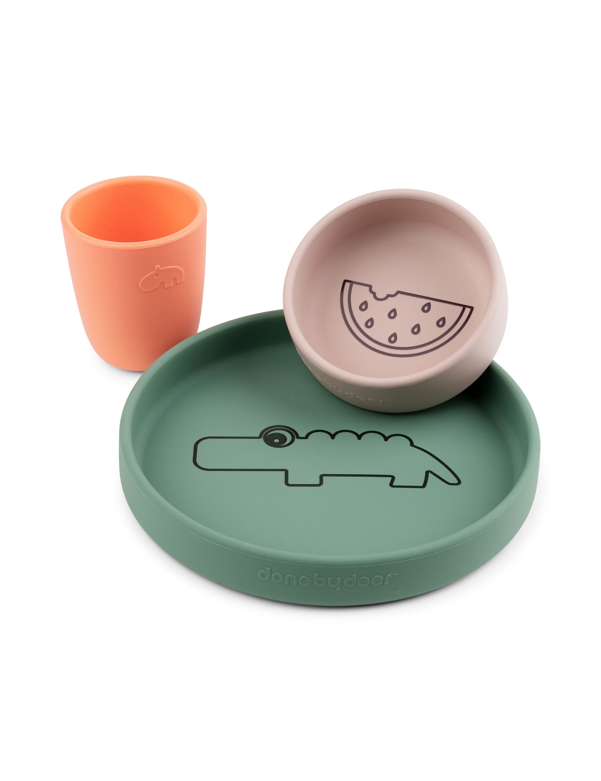 Silicone dinner set Croco Green/Powder/Coral