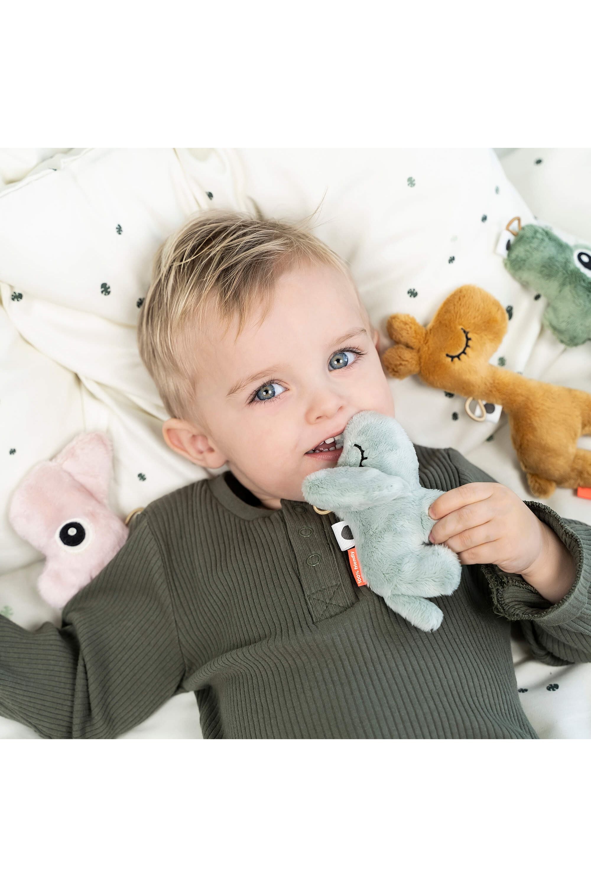 Laat je kleintje de wereld ontdekken met de Tiny sensory rattle Nozo Powder van Done by Deer! Deze schattige neushoorn rammelaar is perfect voor kleine vingertjes om vast te pakken en de zintuiglijke functies te ontdekken. Knijp zachtjes in Nozo's hoorn en luister naar het spannende knispergeluid. Dankzij de elastische lus bevestig je de rammelaar eenvoudig aan een speelkleed, kinderwagen of autostoel. Done by Deer is een Deens merk dat 100% vriendelijke producten ontwerpt, veilig en stimulerend voor jouw kleintje.