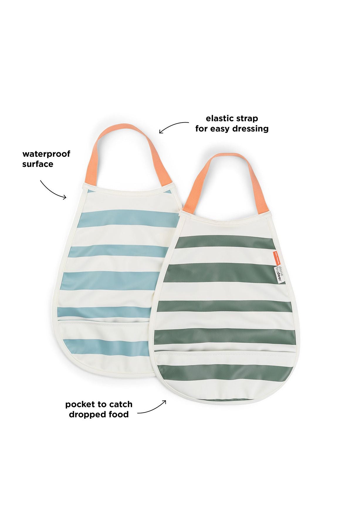Maak etenstijd een vrolijk feestje met deze handige Pull-over slabben van Done by Deer! Dit 2-pack met blauwe en groene strepen is perfect voor jouw kleintje. De superzachte slabben zijn gemaakt van GOTS-gecertificeerd katoen, lief voor de gevoelige babyhuid en makkelijk te wassen. Zo blijft je kleintje schoon en vrolijk tijdens elke maaltijd, en dragen jullie bij aan een duurzamere wereld. Done by Deer combineert functionaliteit met een speels design.