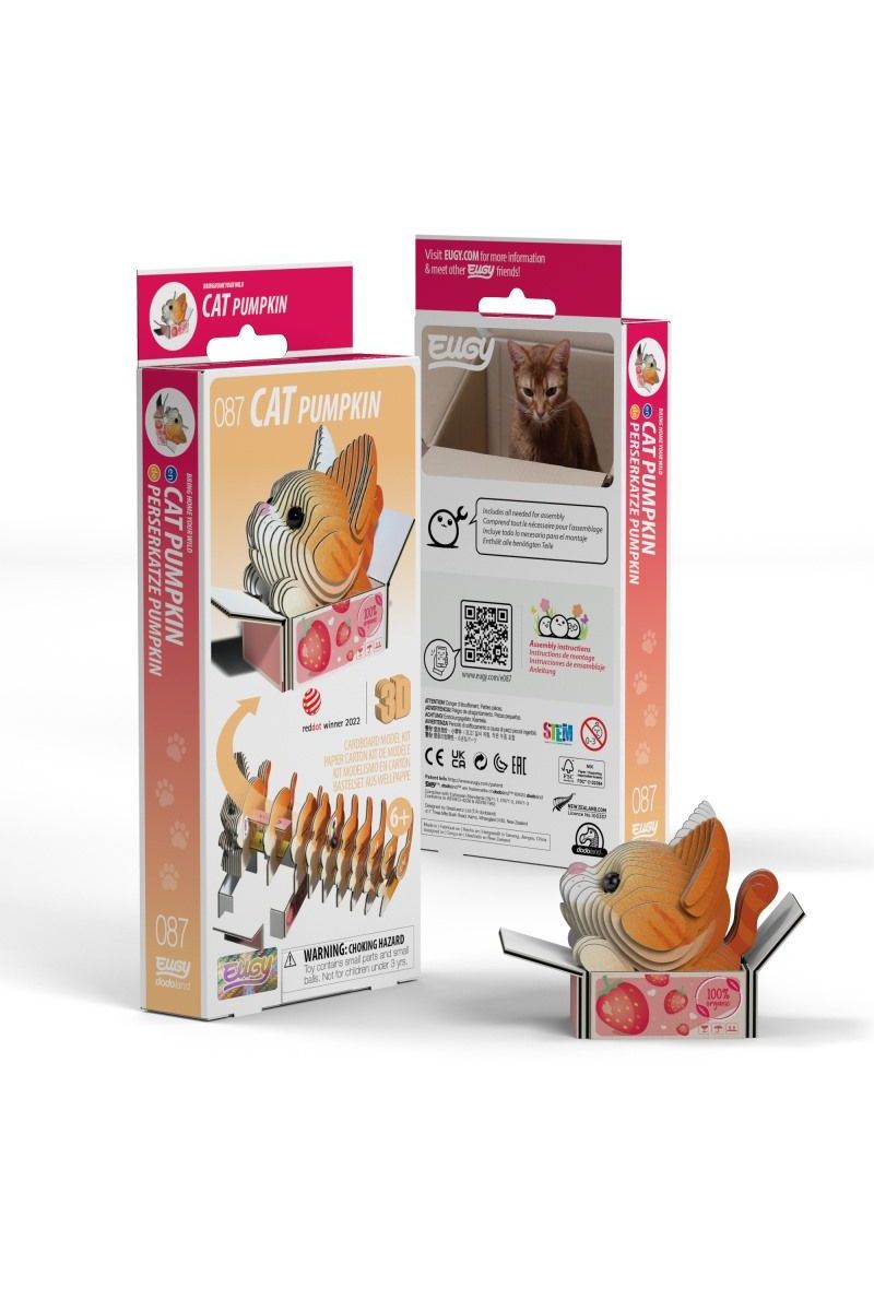 Ontmoet Pumpkin, de meest knuffelige oranje tabby van Eugy! Dit schattige, nieuwsgierige en vriendelijke katje is een echte kletskous die de grappige en zonnige speelkameraad van jouw kind zal zijn. Elk Eugy pakket bevat 7 platte kaarten met genummerde stukjes, klaar om in elkaar te zetten. Perfect voor kleine handjes vanaf 6 jaar om te bouwen en mee te spelen. Stimuleert creativiteit en fijne motoriek op een leuke manier!