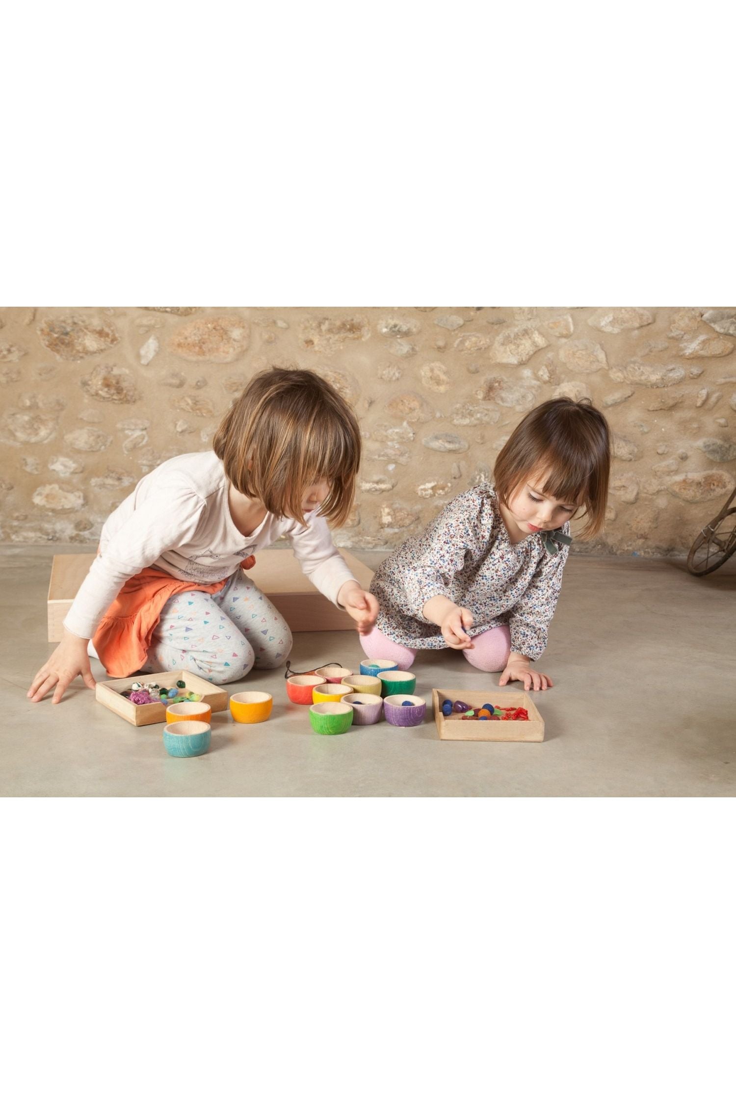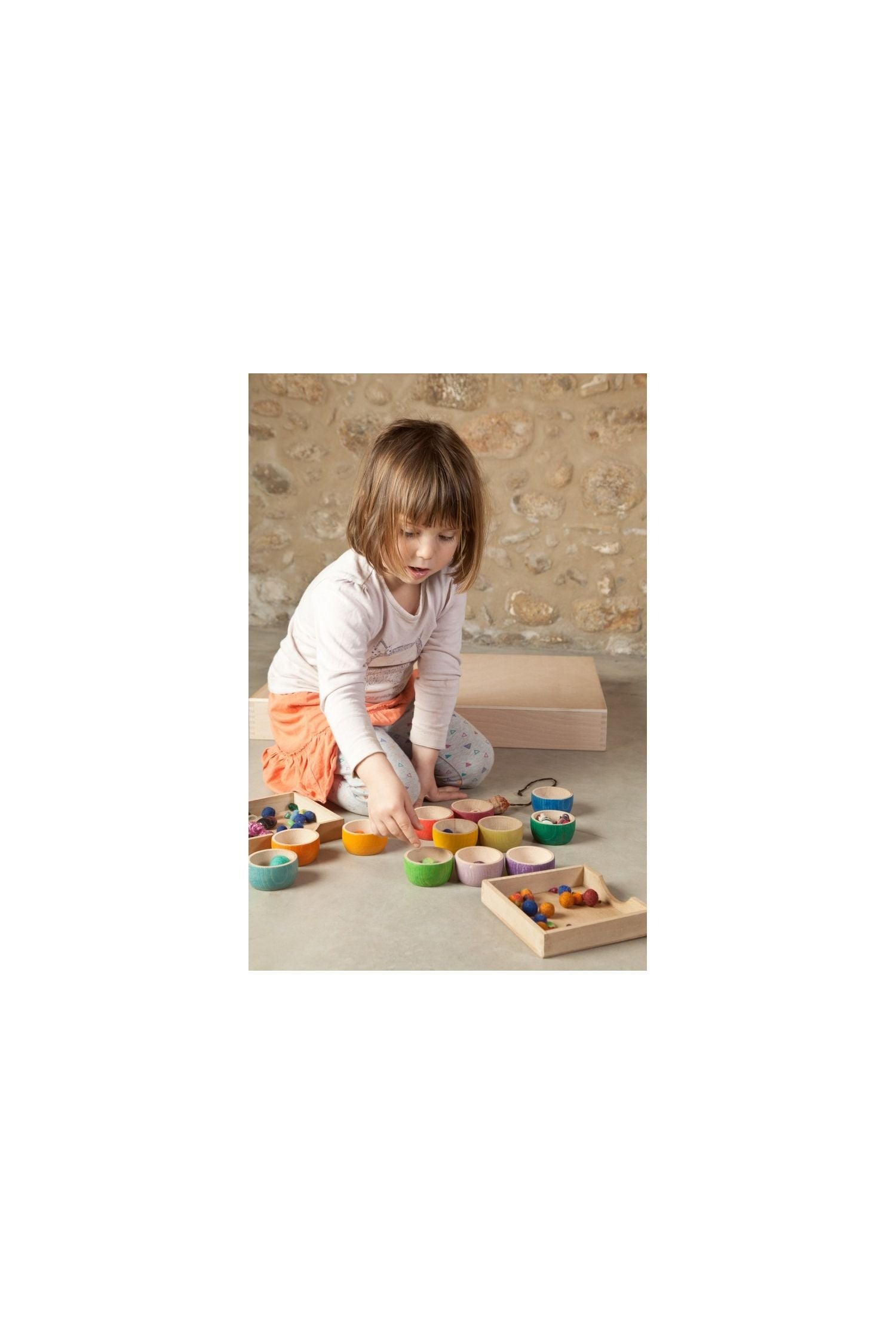Laat de creativiteit van je kleintje bloeien met de Grapat 12 Bowls! Deze set van twaalf prachtig gekleurde houten kommen nodigt uit tot eindeloos open spel. Gemaakt van duurzaam hout en met de hand beschilderd, brengt elk kommetje een harmonieus kleurenpalet en een fijne tactiele ervaring. Stapelen, sorteren, verstoppen of fantasierijk koken, er is geen foute manier om te spelen. Grapat stimuleert de zintuigen en de verbeelding, en elk uniek stukje hout voegt toe aan de magie. Een liefdevol cadeau voor uren speelplezier!