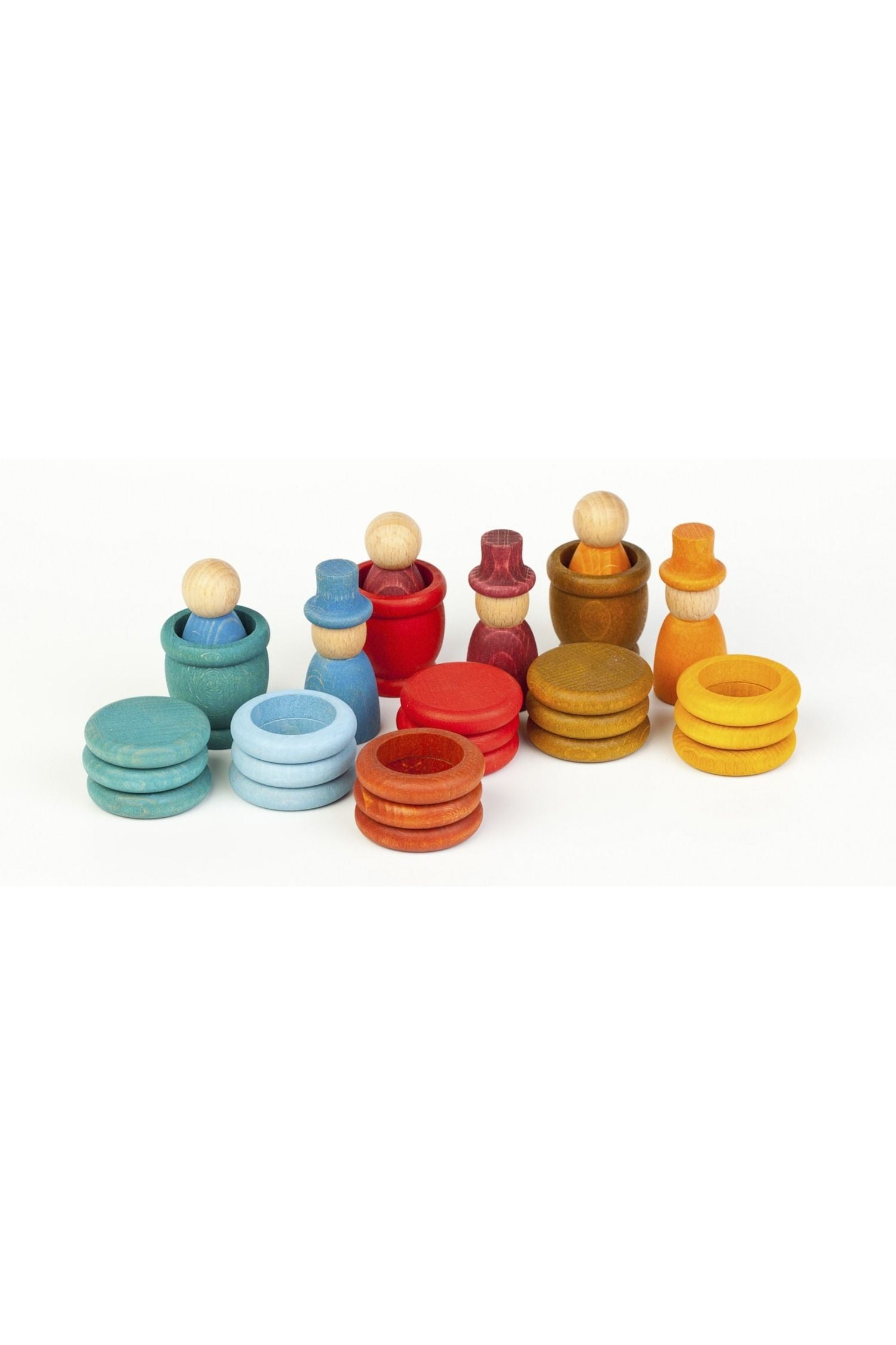 Ontdek de magie van de zomer met Grapat Aguamarina Summer! Deze open-ended speelset, perfect voor kleine ontdekkingsreizigers vanaf 12 maanden, bevat 3 Nins, 3 Nins met hoedjes, 3 Mates, 9 ringen en 9 muntjes in vrolijke zomerse kleuren. Grapat moedigt vrij spel aan, waarbij je kindje zelf de verhalen en avonturen creëert. Laat de fantasie de vrije loop en zie hoe de natuurlijke materialen de zintuigen prikkelen en de creativiteit stimuleren. Een prachtige aanvulling op elke speelhoek!