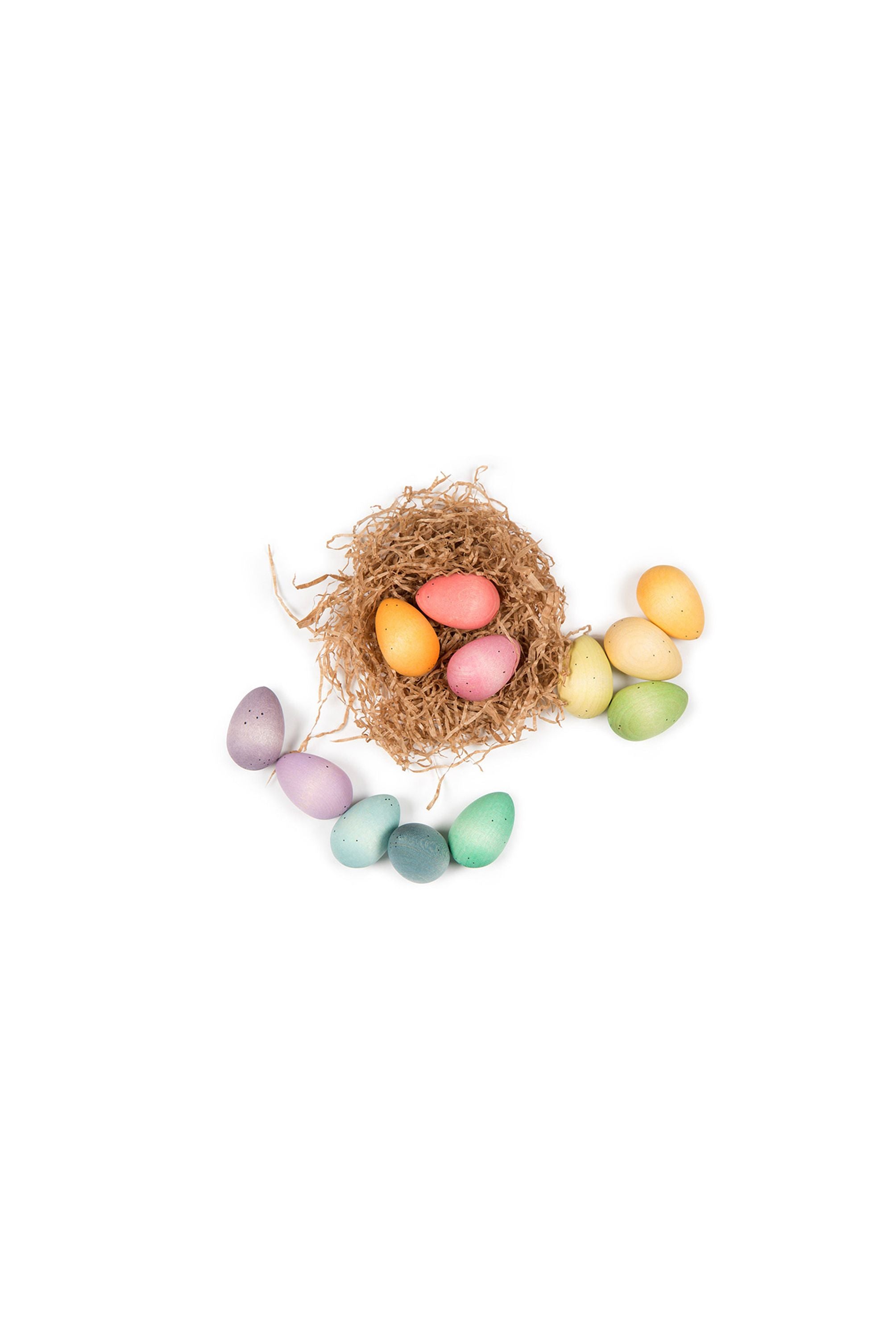 Ontdek de vrolijke Happy Eggs van Grapat! Deze set bevat 12 prachtige houten eitjes in 12 zachte regenboogkleuren. Perfect voor open-einde speelplezier. Je kleintje kan de eitjes gebruiken om de lente te vieren, de paastafel te versieren, te koken in de speelkeuken of ze naar de markt te brengen. Grapat staat bekend om zijn natuurlijke materialen en stimuleert de fantasie. Laat je kindje heerlijk spelen met deze liefdevolle toevoeging aan de speelgoedcollectie.