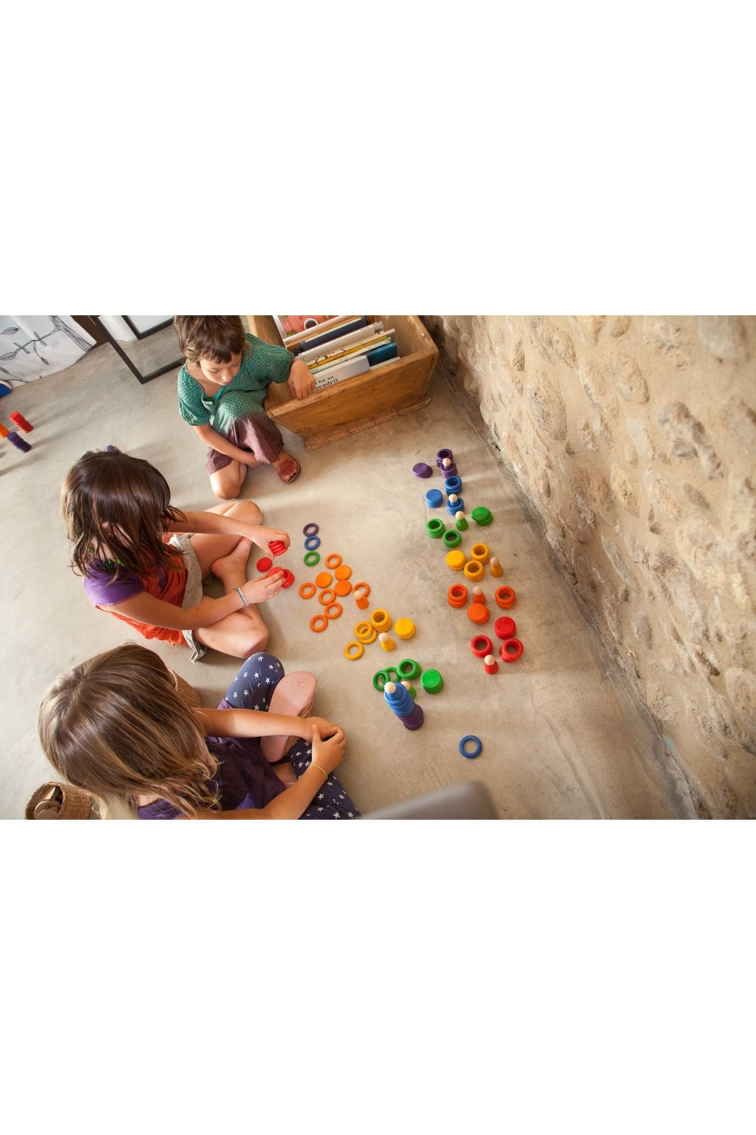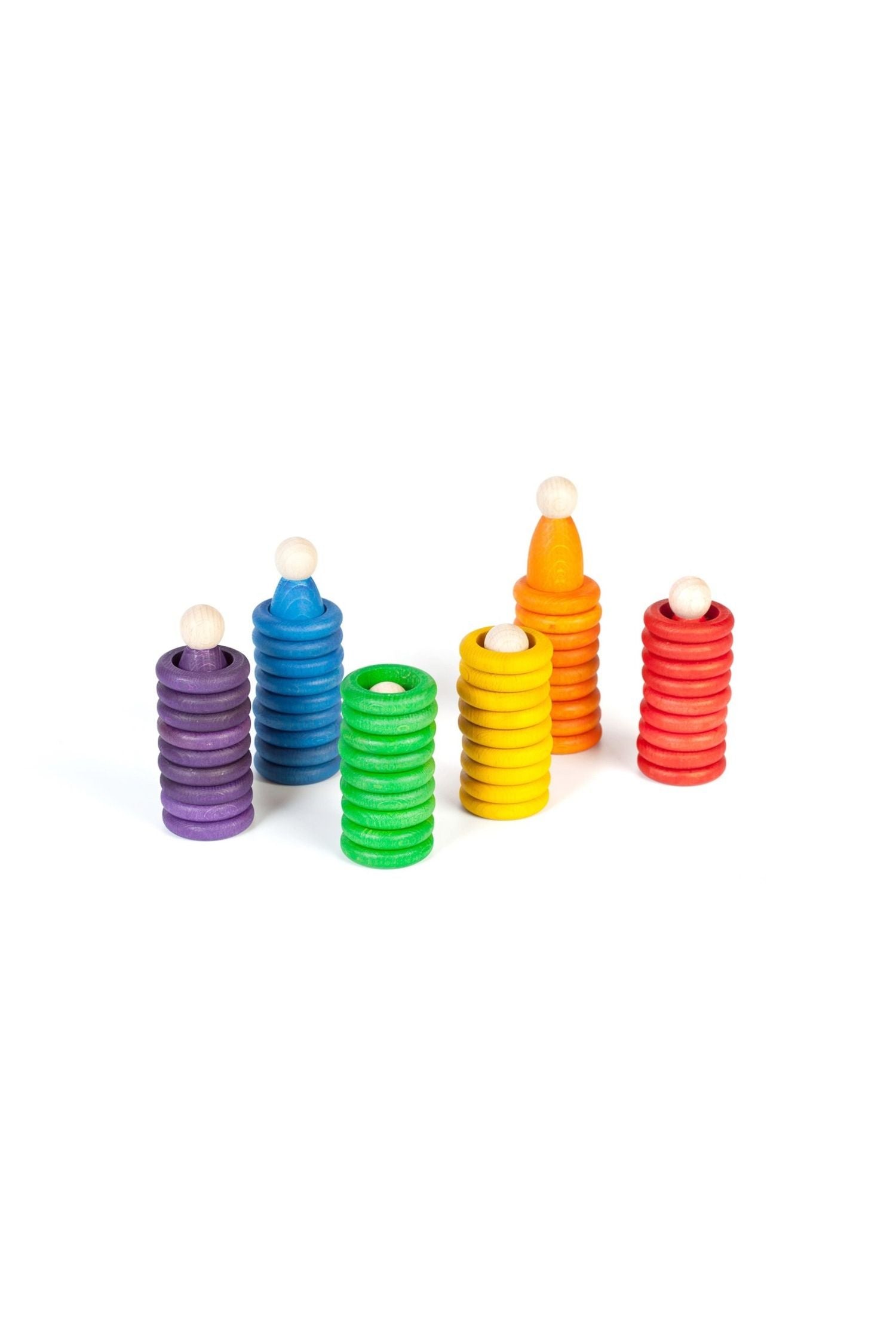 Ontdek de magische wereld van Grapat met de Nins, Rings & Coins set! Dit open-ended speelgoed stimuleert de fantasie van je kindje vanaf 18 maanden. De zes verschillend gekleurde ringen kunnen de Nins verbergen, terwijl de munten bepalen hoe hoog ze rijzen of hoeveel ze bedekken. Een simpel maar veelzijdig spel dat eindeloze mogelijkheden biedt om te verschijnen, verdwijnen en opnieuw ontdekt te worden. Laat je kleintje spelenderwijs de wereld ontdekken!