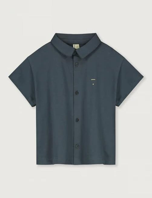 Gray Labe Shortsleeve Blouse Top Blue Grey