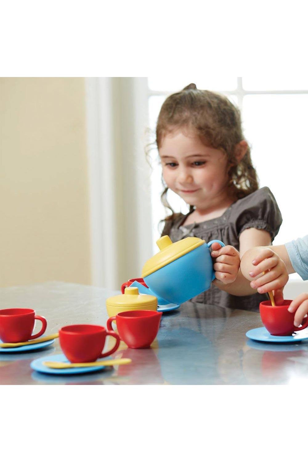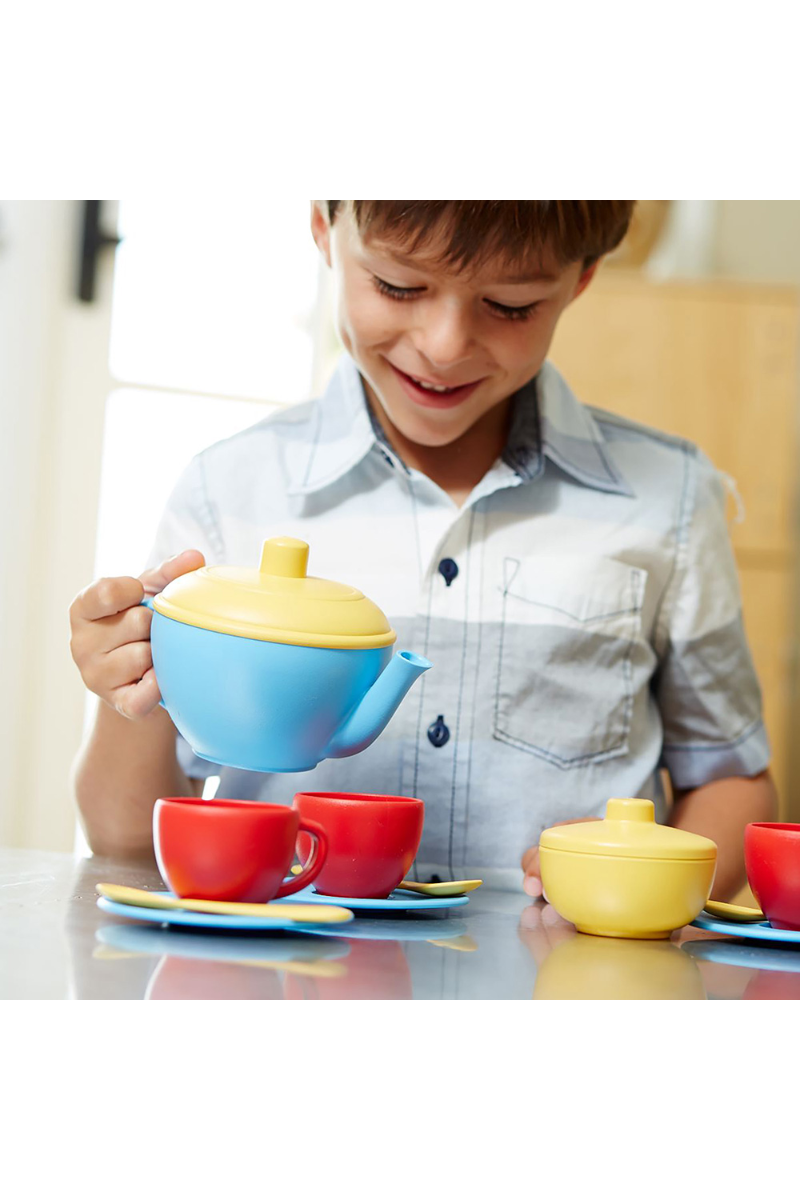 Laat je kleintje genieten van een heerlijk theekransje met deze vrolijke Theeset van Green Toys! Deze gerecyclede theeset in prachtig blauw is perfect voor fantasierijke rollenspellen. Gemaakt van 100% gerecycled plastic, zonder BPA of ftalaten, is het veilig en duurzaam. De 17-delige set, inclusief theepot, suikerpot, kopjes en schoteltjes, stimuleert de fijne motoriek en sociale vaardigheden. Green Toys staat bekend om hun milieuvriendelijke speelgoed, verpakt in gerecycled materiaal met eco-inkt. Een feestje voor je kind én de planeet!