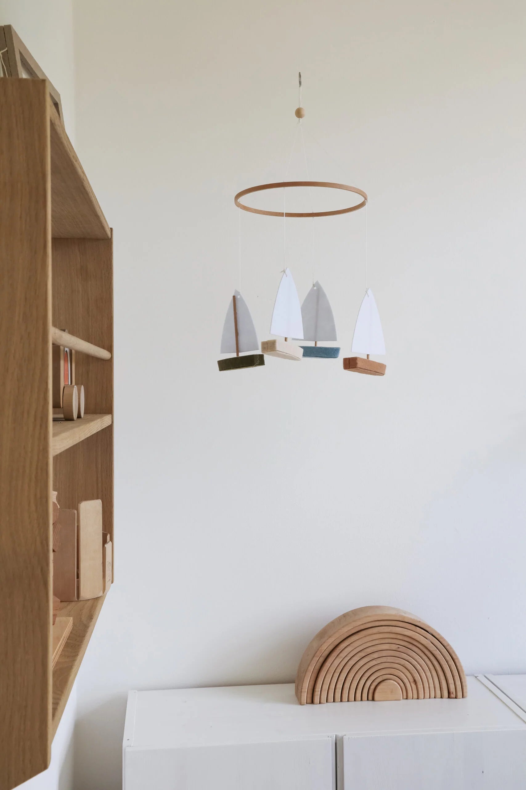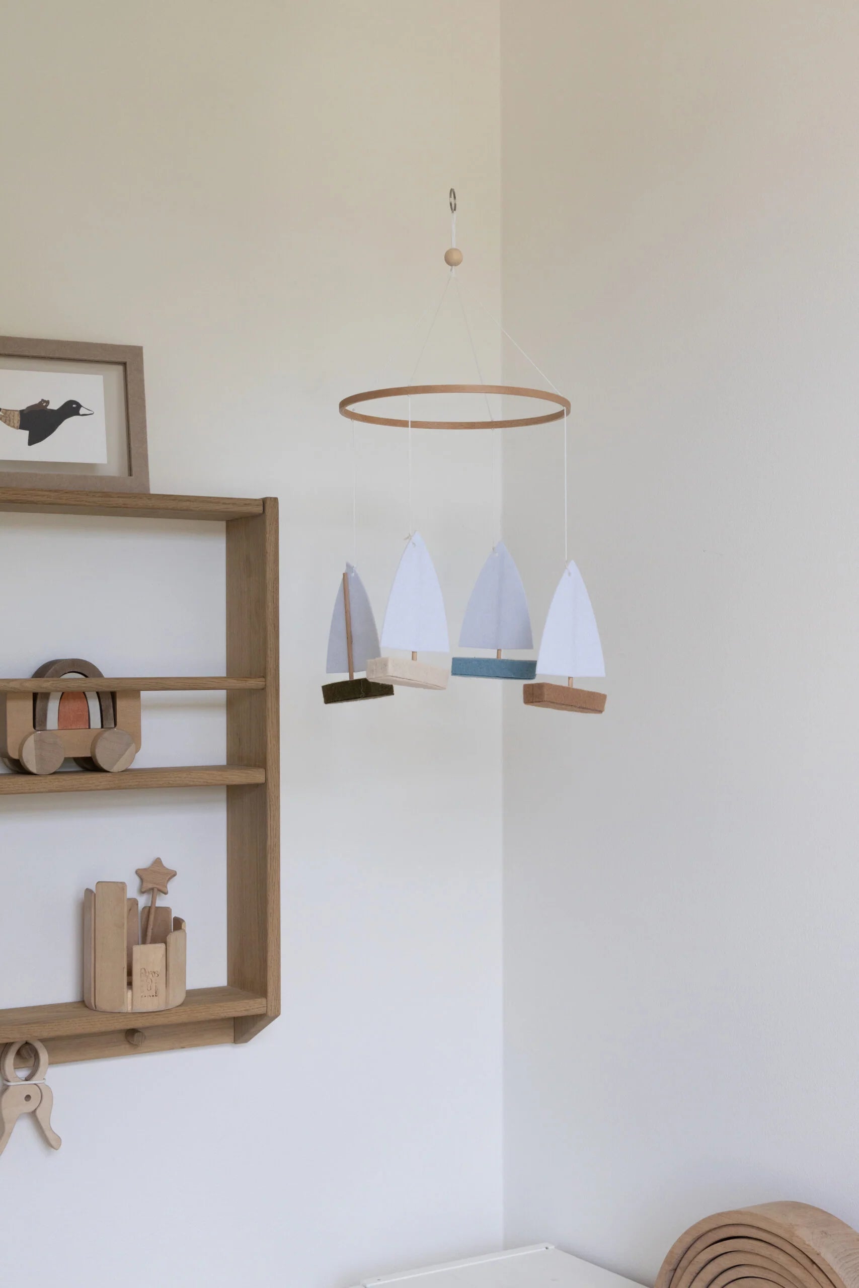 Laat je kleintje wegdromen met de Mobile Boat babymobile van KAS Kopenhagen! Dit handgemaakte mobiel, gemaakt van zacht vilt en FSC-gecertificeerd Beukenhout, brengt een rustgevende, nautische sfeer naar de kinderkamer. De kleurrijke bootjes zorgen voor iets moois om naar te kijken boven de wieg of commode. KAS Kopenhagen staat voor duurzaam en liefdevol design, perfect voor de allerkleinsten! Een betoverende en veilige decoratie.