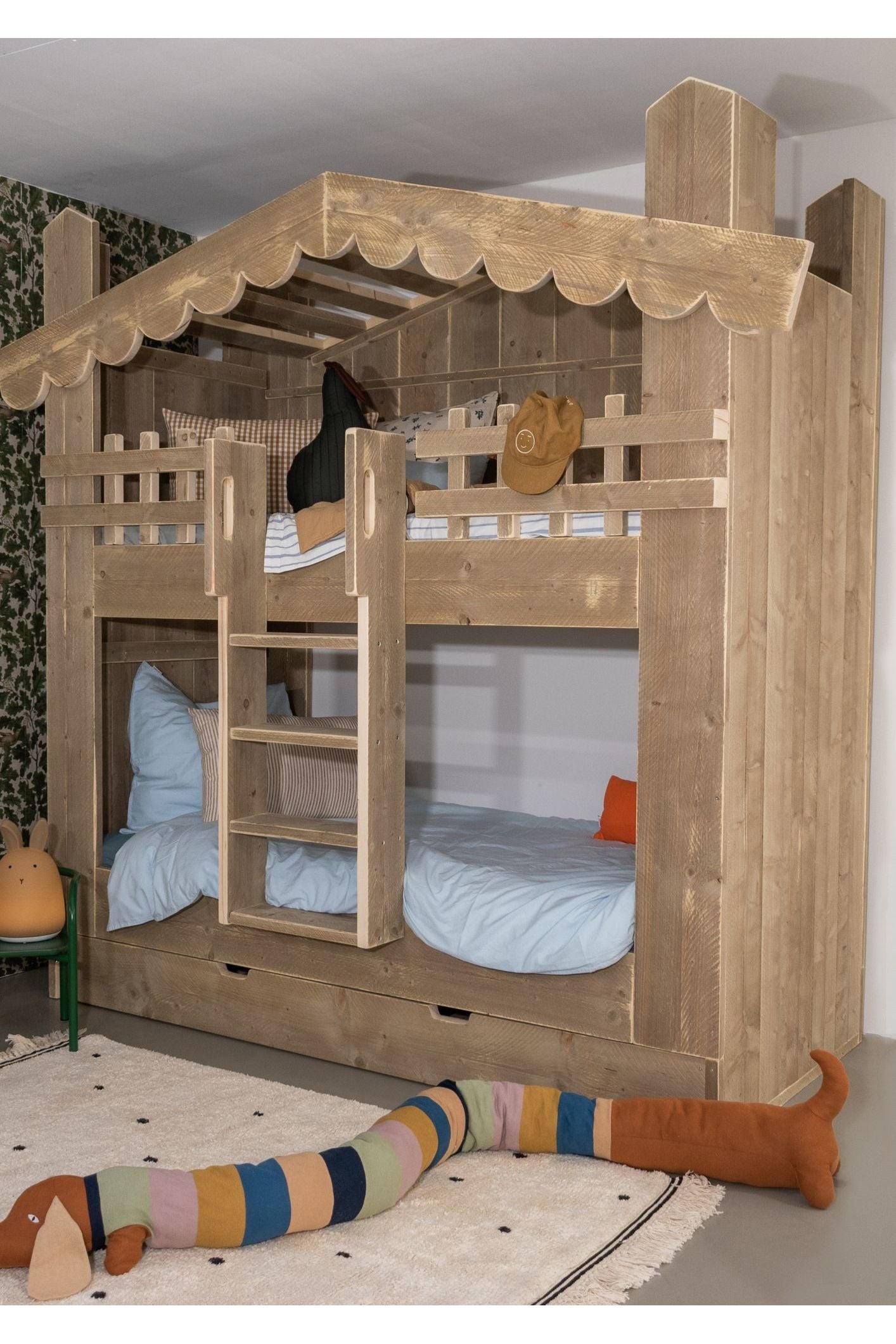 Klaar voor een knus slaapfeestje in het Stapelbed huisje Lou van Saartje Prum! Dit superleuke huisjesbed is een droom die uitkomt voor elk kind. Met twee slaapplekken boven elkaar is het de perfecte plek voor broertjes en zusjes, of voor de leukste logeerpartijtjes. Het stevige design en de lieve uitstraling maken van elke kinderkamer een gezellig plekje vol avontuur. Saartje Prum staat bekend om haar mooie en kwalitatieve meubels die de fantasie prikkelen, en dit stapelbed is daar geen uitzondering op. Duik in dromenland en creëer de mooiste herinneringen in jullie eigen huisje Lou!