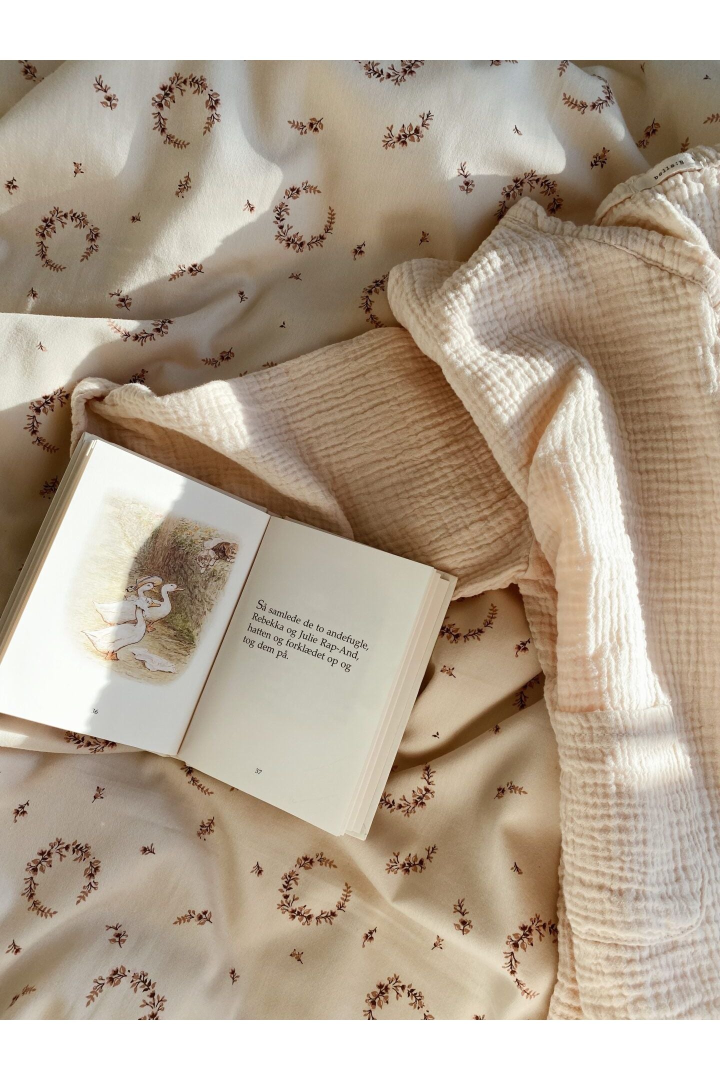 Droom zacht met het Bedline Vintage flower wreath dekbedovertrek van KAS Kopenhagen! Gemaakt van 100% biologisch katoen voor de liefste dromen van je kind. Dit prachtige, beige beddengoed past perfect in elke kinderkamer en is heerlijk zacht. KAS Kopenhagen staat voor duurzaamheid en designs die meegroeien met je kleintje. Tijd voor een knusse nachtrust!