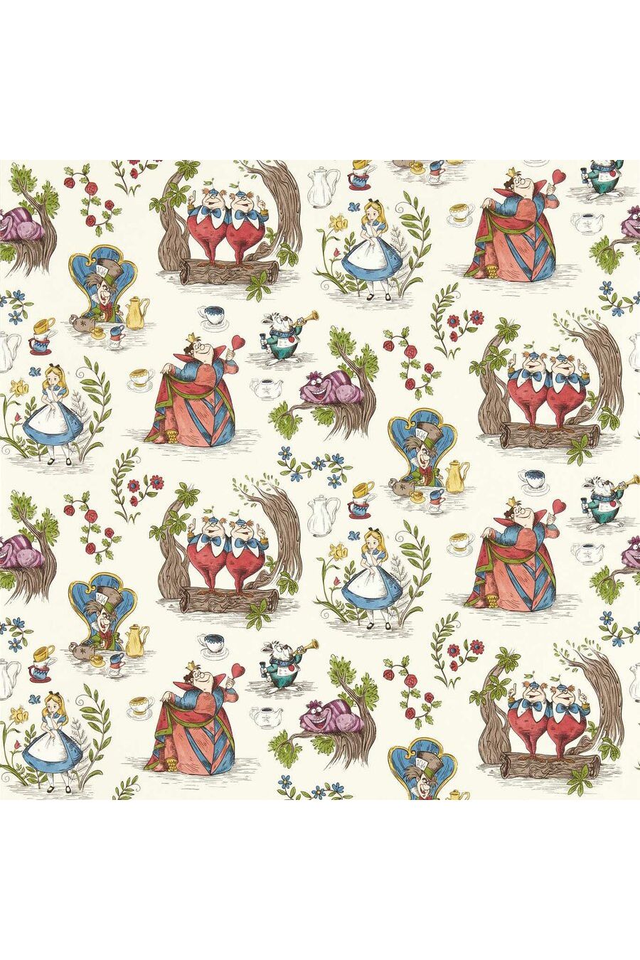 Laat je meeslepen naar een magische wereld met dit "Alice In Wonderland - Hundreds & Thousands" behang van Disney Home x Sanderson. Het Witte Konijn neemt je mee op avontuur waar je onderweg de Mad Hatter, Cheshire Cat en Tweedledum en Tweedledee tegenkomt. Dit prachtige vliesbehang, met originele Disney kunstwerken, brengt het verhaal speels tot leven en is perfect voor een fantasierijke kinderkamer!