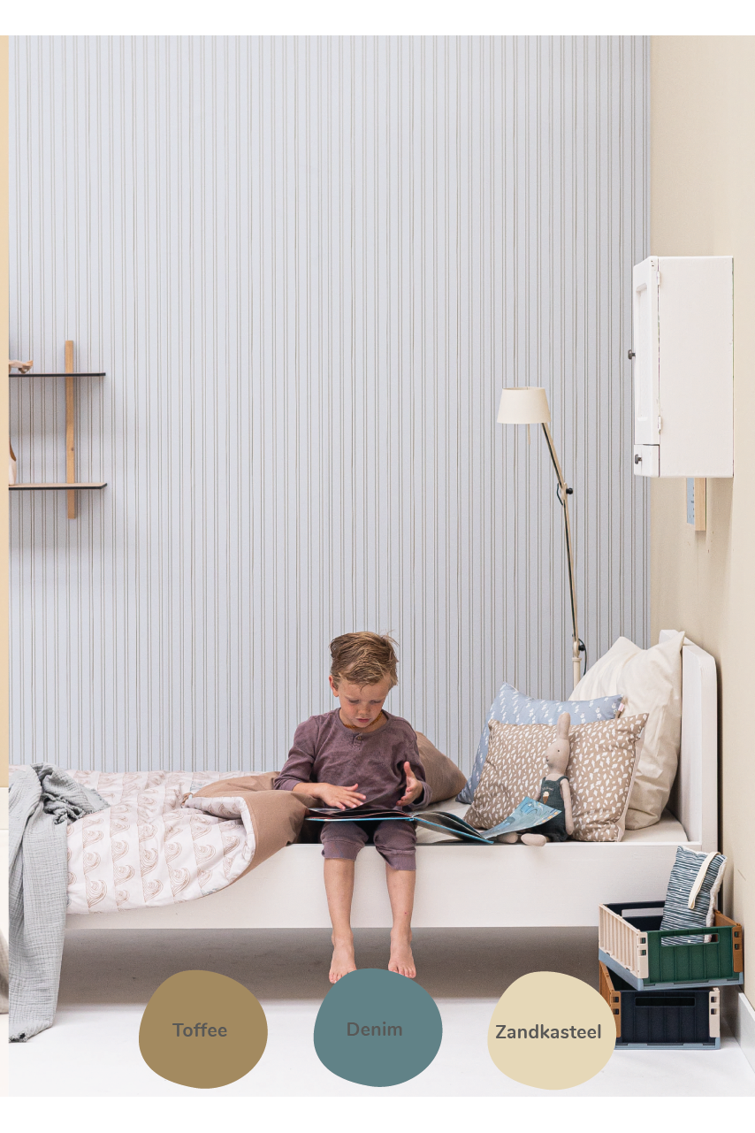 Breng een gezellige en tijdloze sfeer in de kinderkamer met dit prachtige gestreepte behang "Zee" van Bibelotte! Of je nu een hele muur of een strook als lambrisering behangt, de subtiele strepen zorgen voor een nostalgisch effect. Bibelotte staat bekend om haar duurzame en tijdloze collecties, perfect om mee te groeien met je kindje. Dit vliesbehang is ook nog eens makkelijk aan te brengen en vrij van schadelijke stoffen. Creëer een dromerige plek waar je kleintje heerlijk kan spelen en slapen.