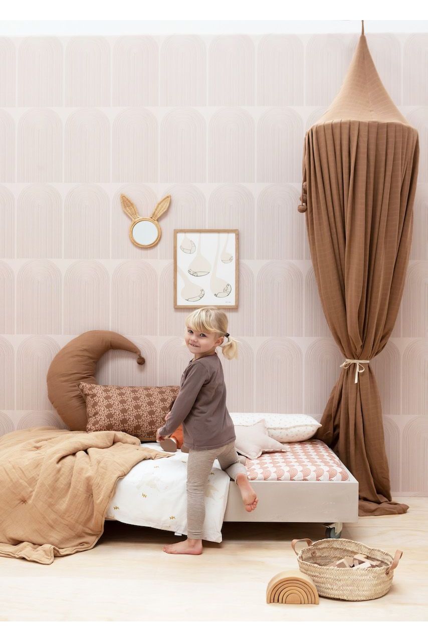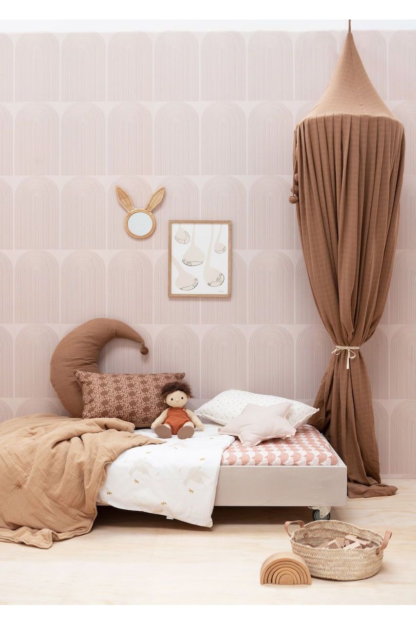 Laat de kinderkamer stralen met dit zachtroze behang vol vrolijke regenbogen van Bibelotte! De trendy terra kleur en de speelse grafische print met ronde vormen brengen direct een knusse en moderne sfeer. Dit hoogwaardige vliesbehang is super makkelijk aan te brengen en blijft lang mooi. Ideaal voor kleine dromers en avonturiers.
