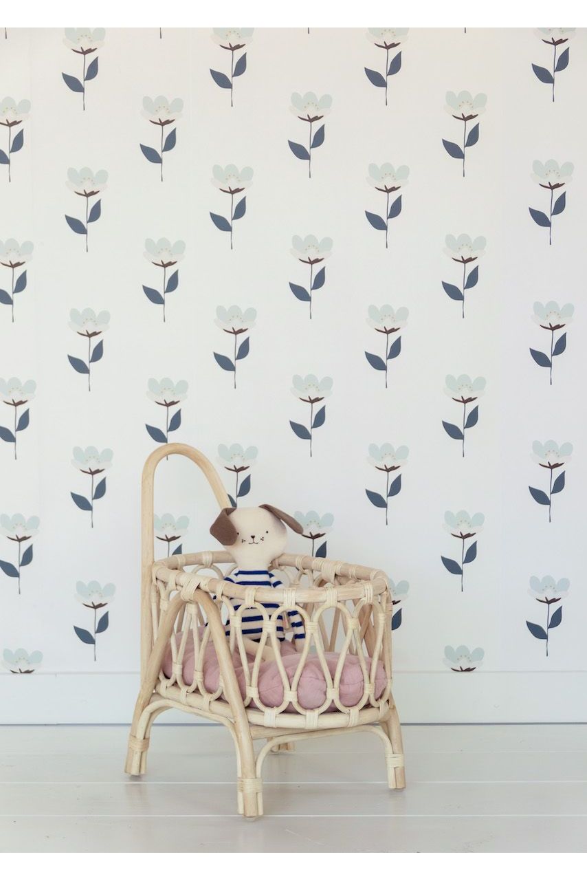 Droom weg met dit vrolijke Behang Retro Bloem - Blauw van Bibelotte! De prachtige petroltint van de blaadjes combineert perfect met het frisse lichtblauw van de bloemen, waardoor de kinderkamer een zachte en speelse uitstraling krijgt. Dit vliesbehang is van hoogwaardige kwaliteit, makkelijk aan te brengen en blijft lang mooi. Het is de ideale basis voor uren speelplezier en heerlijk slapen.