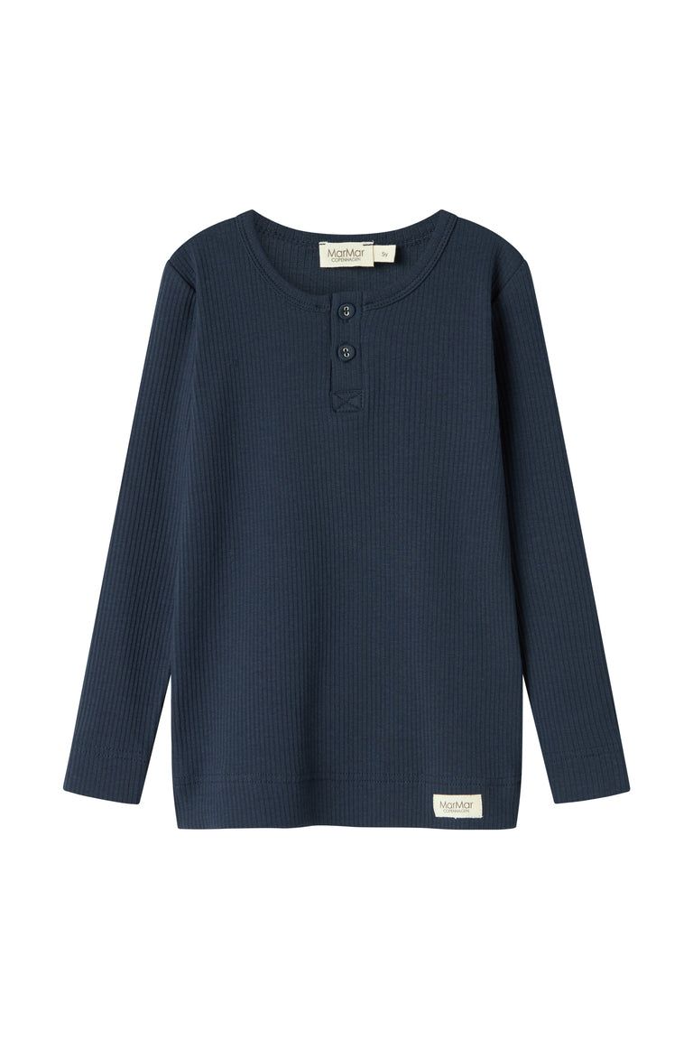 MarMar Copenhagen's zachte Tee LS in de stoere kleur Pilot Navy is een must-have voor kleine avonturiers! Dit heerlijke shirt met lange mouwen is gemaakt van een superzachte mix van modal en biologisch katoen, perfect voor de gevoelige babyhuid. Comfortabel en stijlvol, ideaal voor spelen en knuffelen. MarMar staat bekend om hun duurzame en mooie kinderkleding, en dit shirt is daar een prachtig voorbeeld van. Een fijne basis voor elke dag!