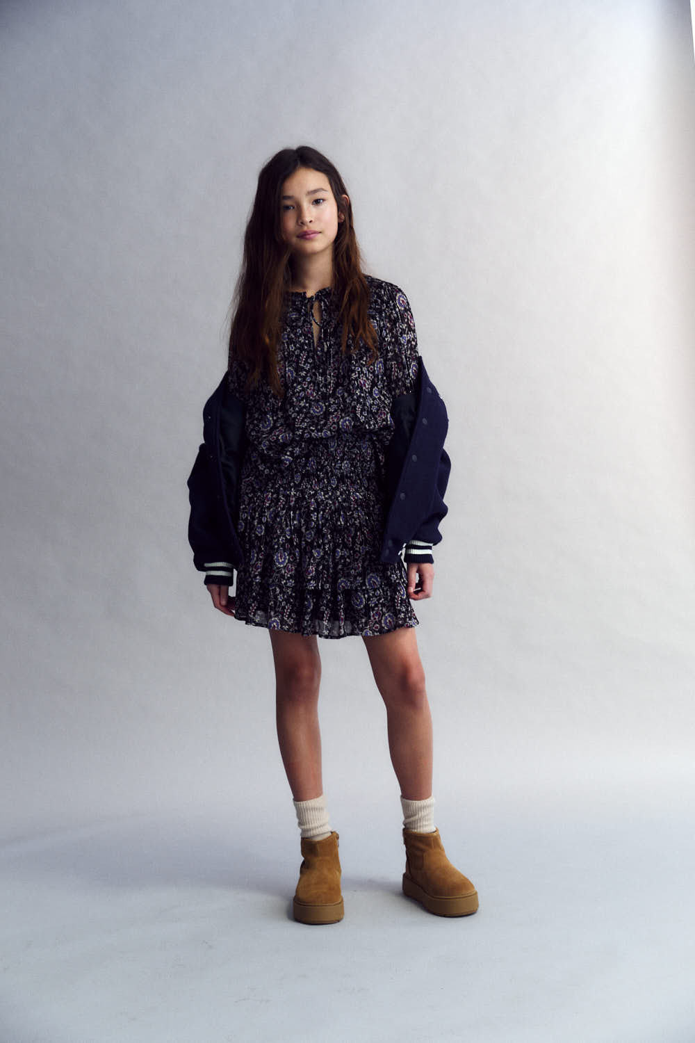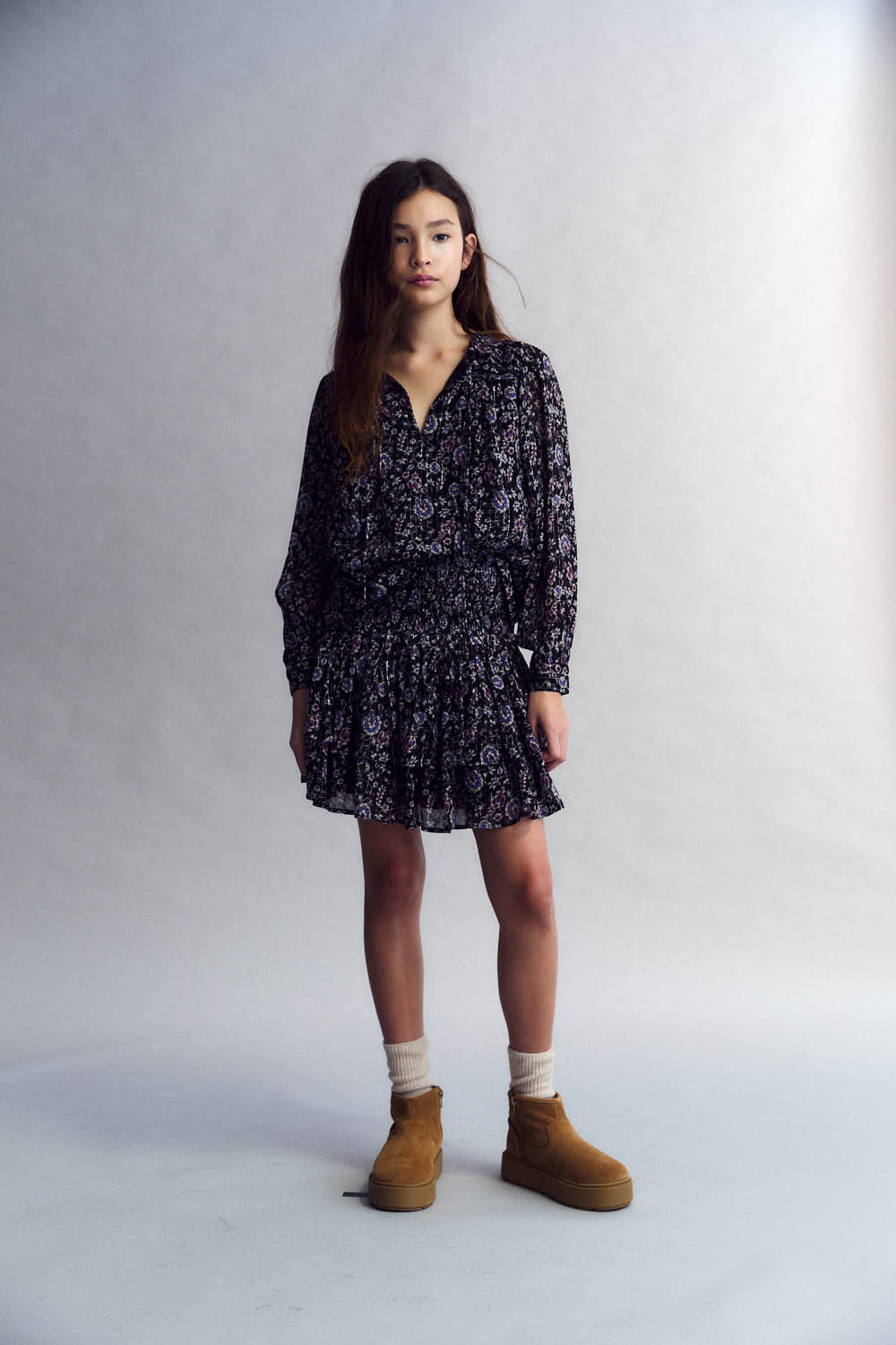 Laat je stralen in de Francisca Teen Skirt van The New Society! Deze zwierige viscose rok met een subtiele lurex glans en een delicate print is perfect voor elke dag. Dankzij de smok aan de bovenkant zit hij heerlijk comfortabel. De dubbele ruches aan de zoom zorgen voor vrolijke beweging en charme. Gemaakt met oog voor kwaliteit en duurzaamheid, brengt deze rok een lach op je gezicht en maakt elke outfit compleet.
