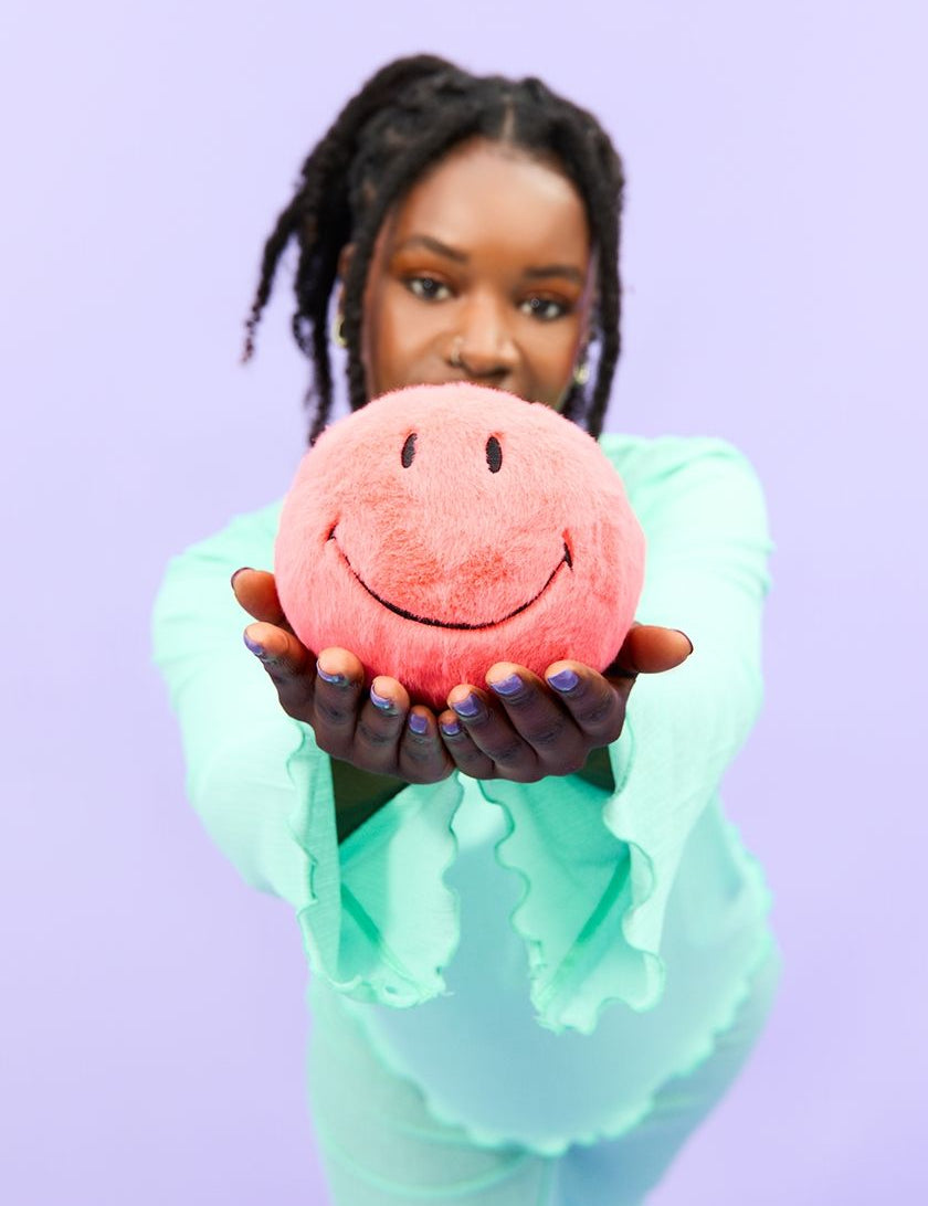 Smiley Keychain ECO Fuzzy - Bright Coral