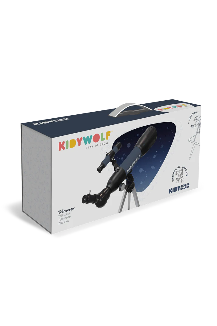 Laat de nieuwsgierigheid van je kind stralen met de Kidywolf Kidytelescope! Speciaal ontworpen door twee Belgische vaders, moedigt dit kindvriendelijke speelgoed je kleine ontdekkingsreiziger aan om de sterrenhemel te verkennen. Met een stabiel statief en ingebouwd kompas wordt elke observatie een betoverend avontuur. Het 45° diagonale prisma zorgt voor optimaal kijkcomfort. Kidywolf staat voor slim, kwalitatief en leerzaam speelgoed dat generaties verbindt en de verbeelding prikkelt. Een perfect cadeau voor de kleine astronoom in de dop!