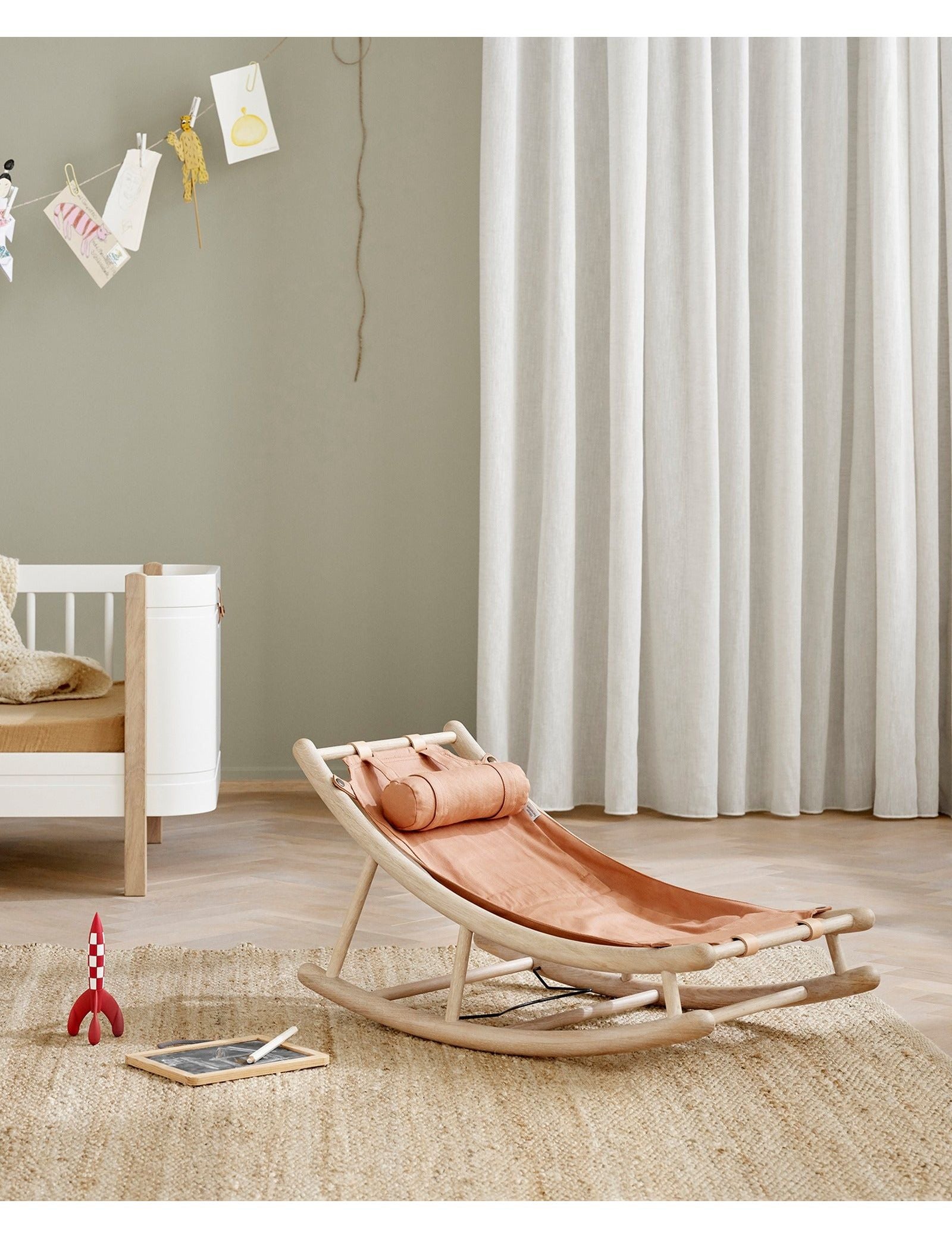 Wood Toddler rocker, oak/grey