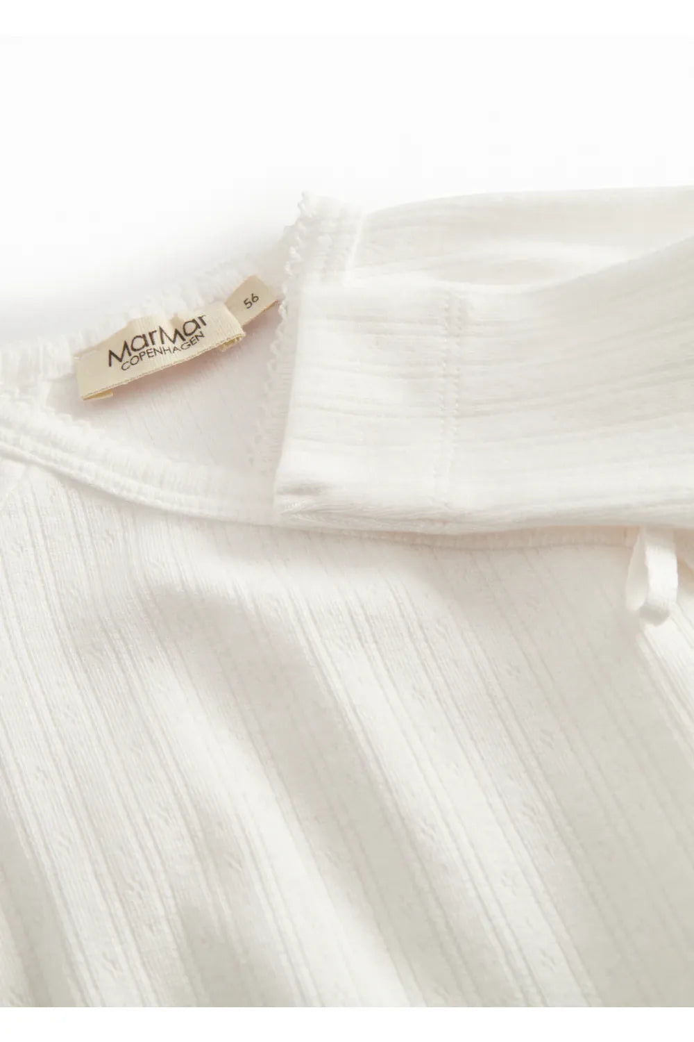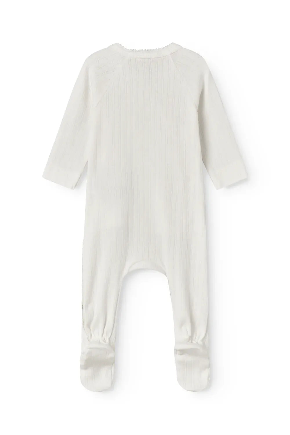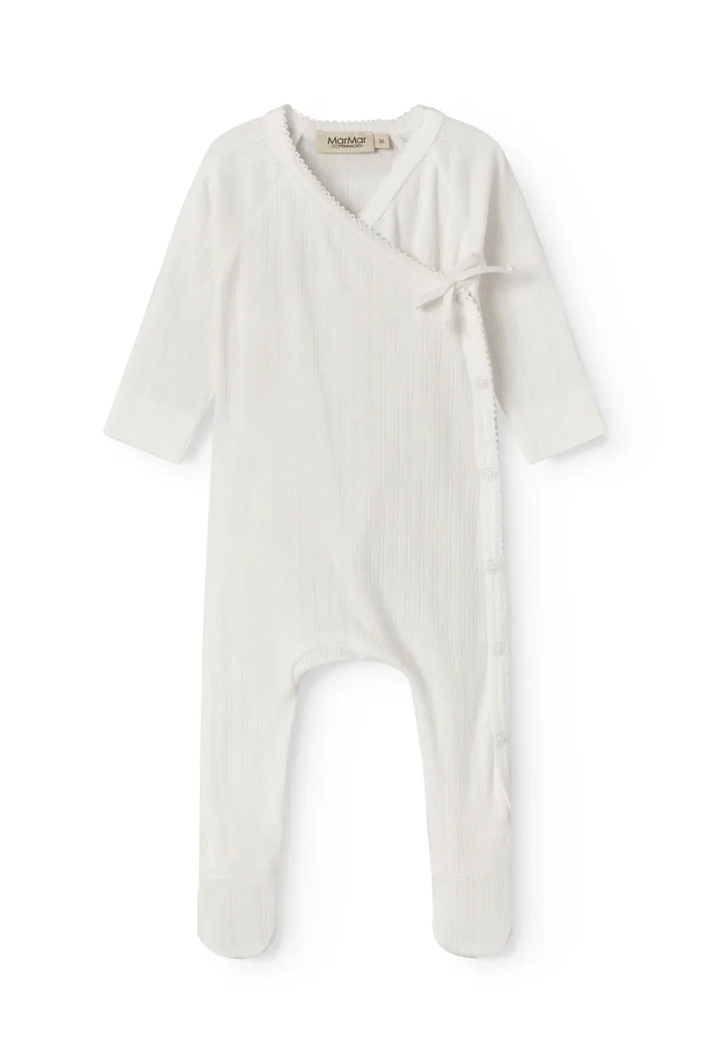 Laat je kleintje heerlijk ontspannen in de Rubetta - Modal Pointelle - Gentle White van MarMar Copenhagen. Dit schattige boxpakje is gemaakt van een zijdezachte mix met biologisch katoen, wat perfect aanvoelt op de gevoelige babyhuid. Het verfijnde pointelle patroon geeft een klassieke en luxe uitstraling aan dit witte pakje. Dankzij de handige drukknoopjes is het aan- en uitkleden heel eenvoudig. Of het nu een rustige middag is of een bijzonder moment, je baby geniet van optimaal comfort. Ontdek de tijdloze stijl van MarMar Copenhagen en geef je baby het allerbeste met dit prachtige kledingstuk.