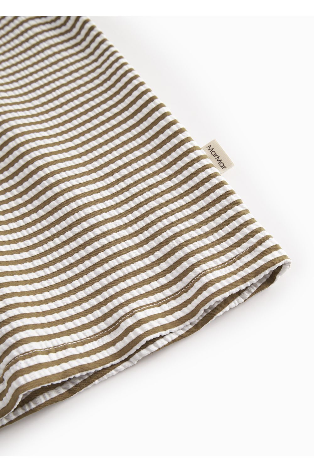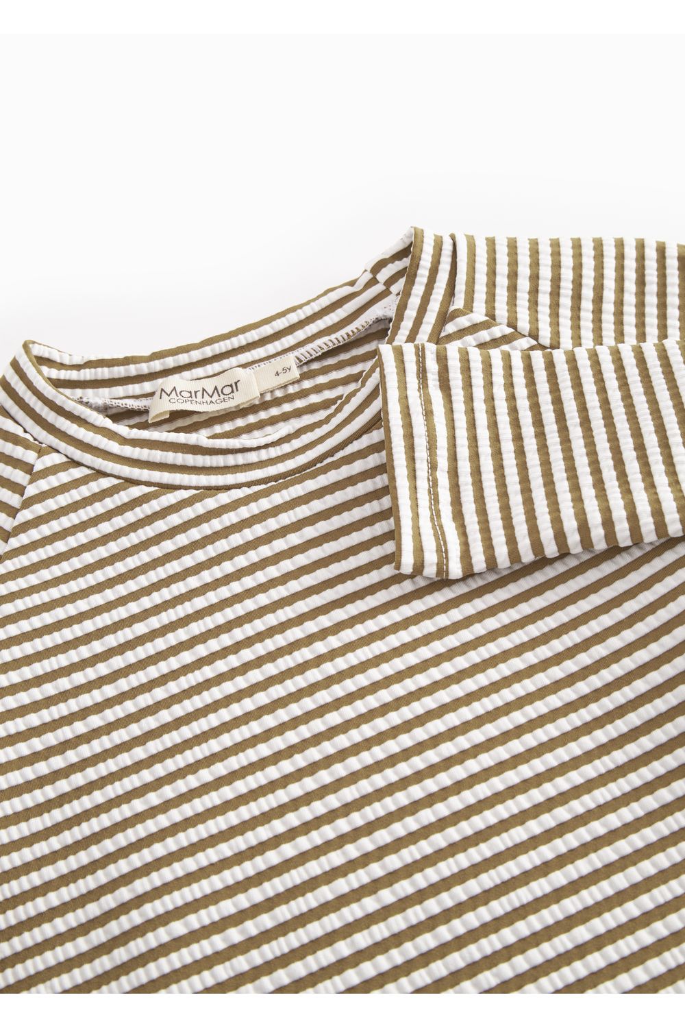 Laat je kleintje stijlvol spetteren met de Swean Tee - Dark Bronze Stripe van MarMar Copenhagen. Dit hippe zwemshirt met stoere bruine strepen biedt niet alleen een retro look, maar ook optimale bescherming tijdens zonnige dagen aan het strand of bij het zwembad. Dankzij de zachte, elastische stof zit het shirt heerlijk comfortabel en droogt het snel op na een frisse duik. Perfect voor actieve waterratjes die houden van spelen en ontdekken. Kies voor de duurzame kwaliteit van MarMar Copenhagen en maak de vakantieoutfit van je kindje compleet met dit onmisbare item.
