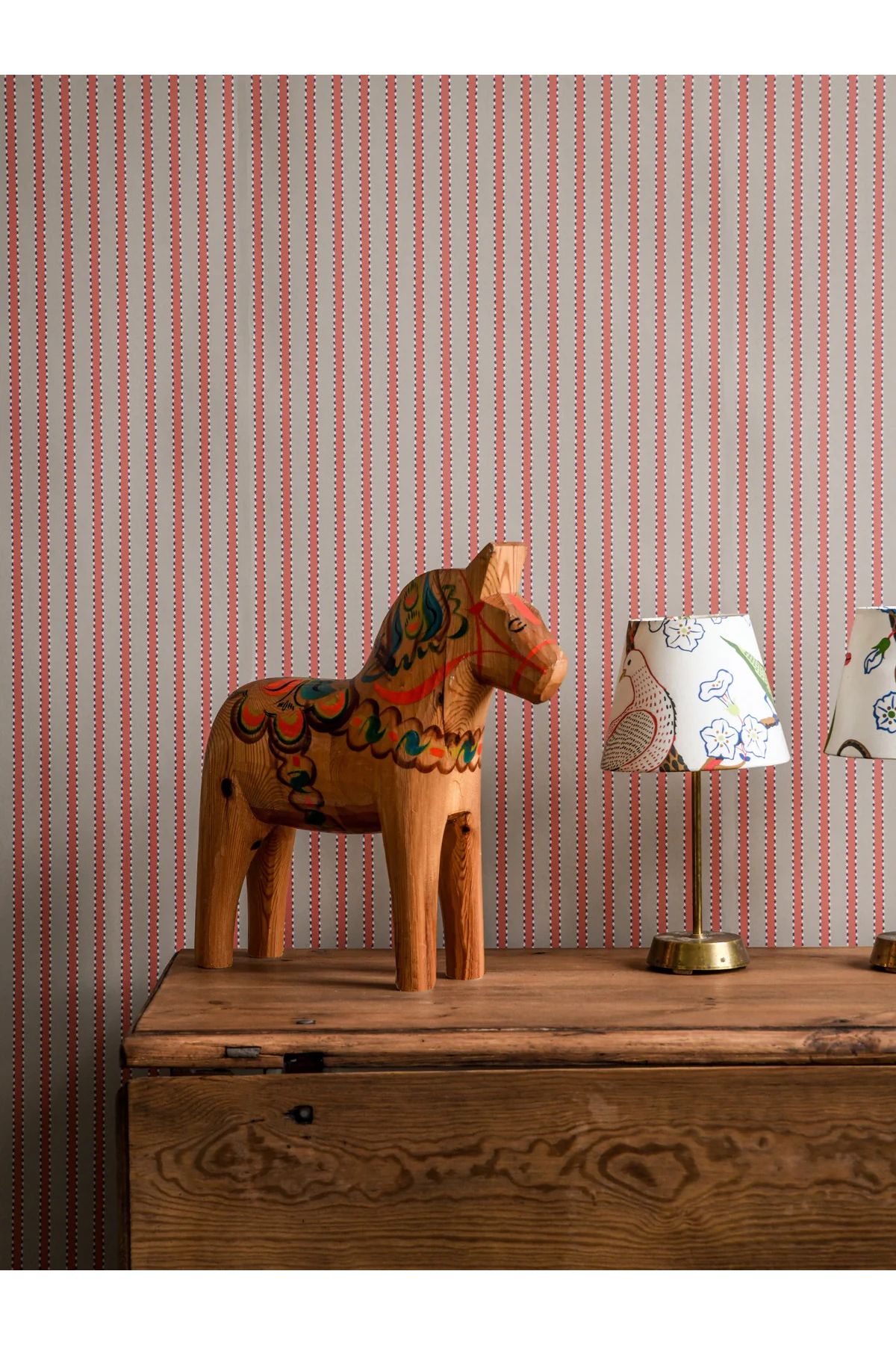 Ontdek het speelse 'Wallpaper Stiched Stripe - Coral' van Långelid / von Brömssen! Dit behang tovert je muren om met charmante strepen en handgeplakte 'steken', geïnspireerd op zacht textiel. De bekende Zweedse ontwerpers Daniel Långelid en Emma von Brömsen creëerden dit unieke vliesbehang met traditionele druktechnieken. Het geeft een warme, levendige sfeer aan elke kinderkamer. Een vrolijke en tijdloze toevoeging om bij weg te dromen.