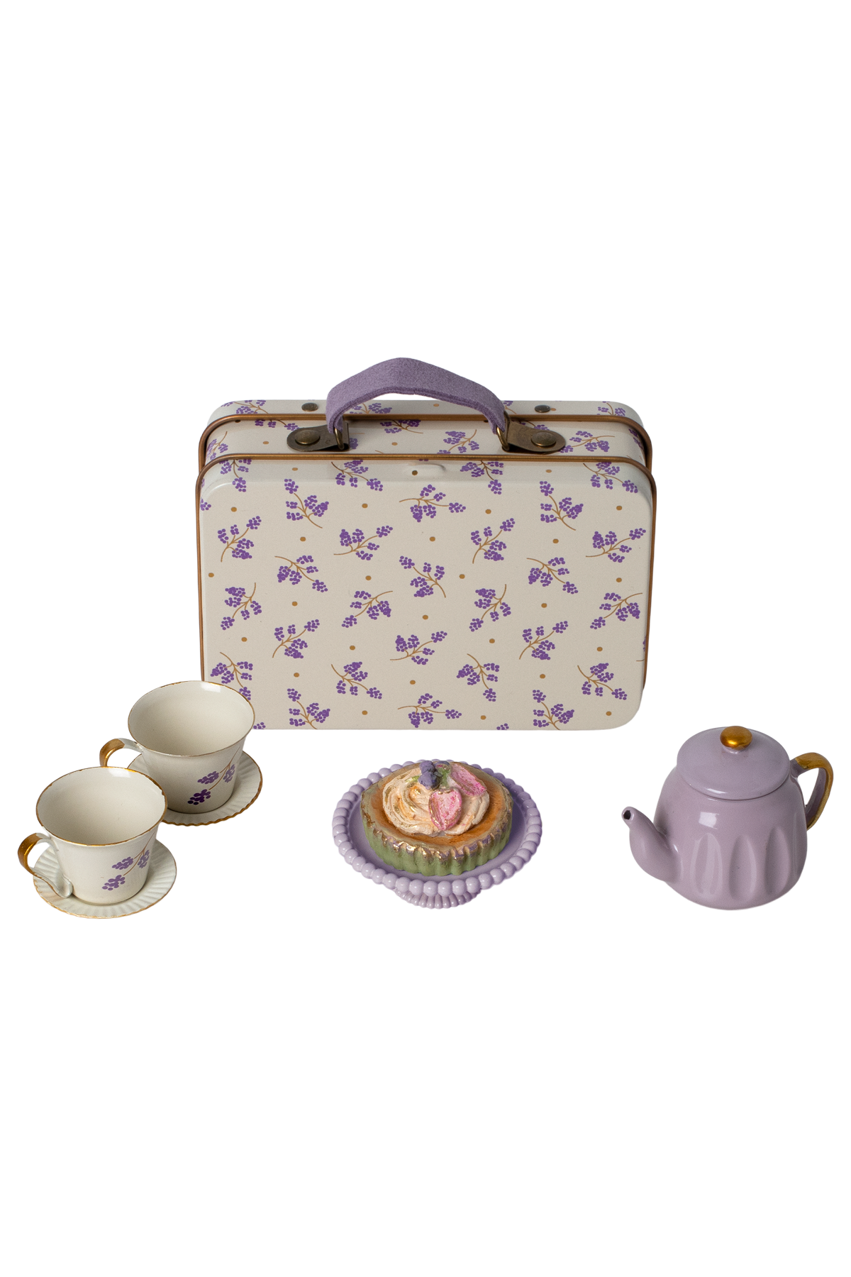 Laat je kleintje genieten van een magische theetijd met de Maileg Afternoon Treat, Mouse - Purple Madelaine! Deze schattige theeset is perfect op maat voor muizenpootjes en bevat alles voor een knus moment met thee, cakejes en servies. Het geheel komt in een prachtig gedecoreerde metalen koffer, ideaal voor fantasierijk spel en om overal mee naartoe te nemen. Gemaakt van metaal en polyresin, stimuleert dit setje urenlang creatief plezier voor kindjes vanaf 3 jaar. Een heerlijk cadeau dat de verbeelding prikkelt!