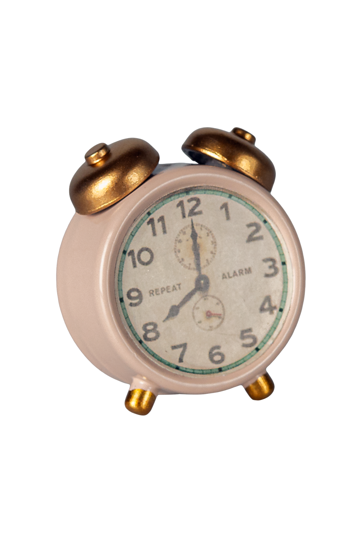 Ding dong! Wakker worden, lieve muisjes! Met deze schattige Maileg wekker in poederroze kleur is opstaan elke dag een feestje. Gemaakt van stevig metaal en perfect voor kleine handjes, helpt dit klokje je kindje spelenderwijs de tijd te leren. Het is ideaal voor Maileg-muisvriendjes en staat garant voor urenlang fantasierijk speelplezier. Een liefdevol cadeau voor kindjes vanaf 3 jaar.