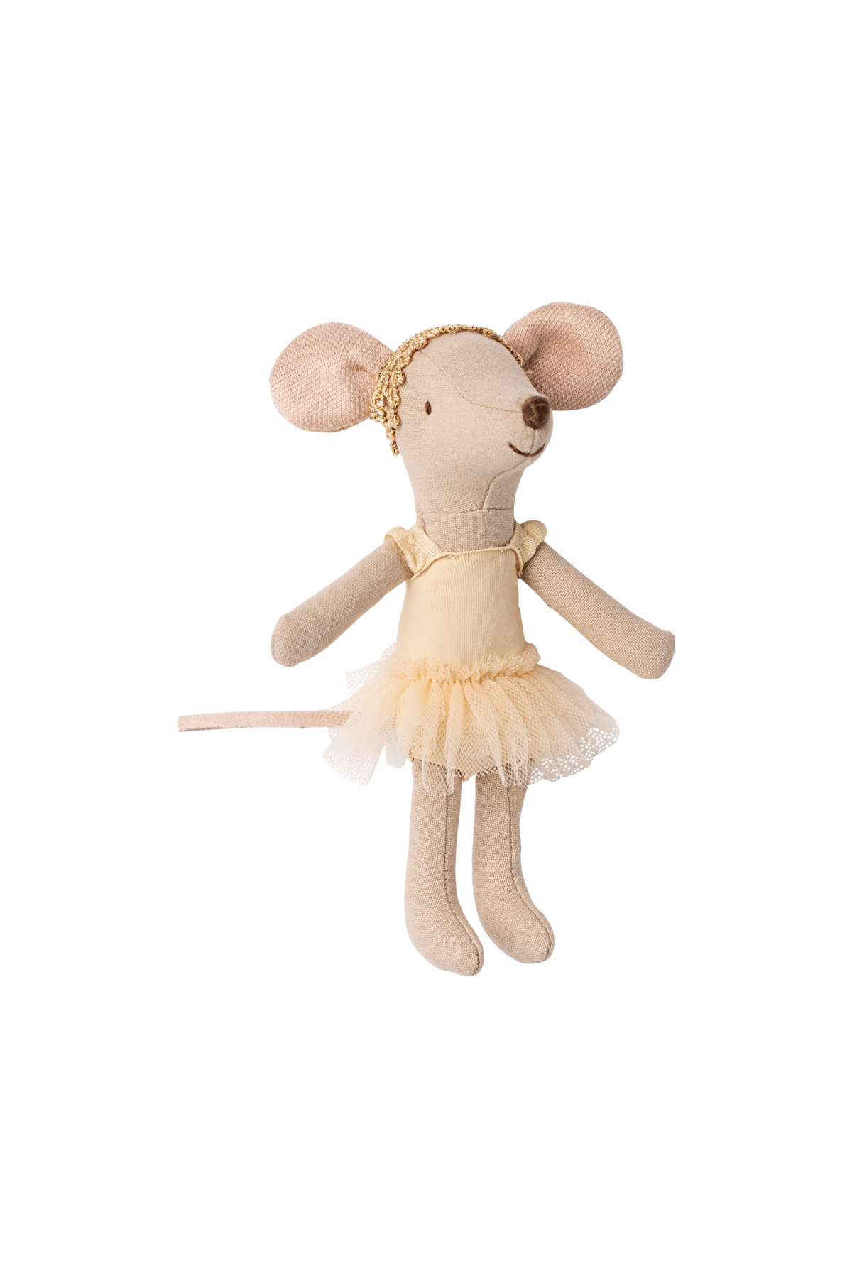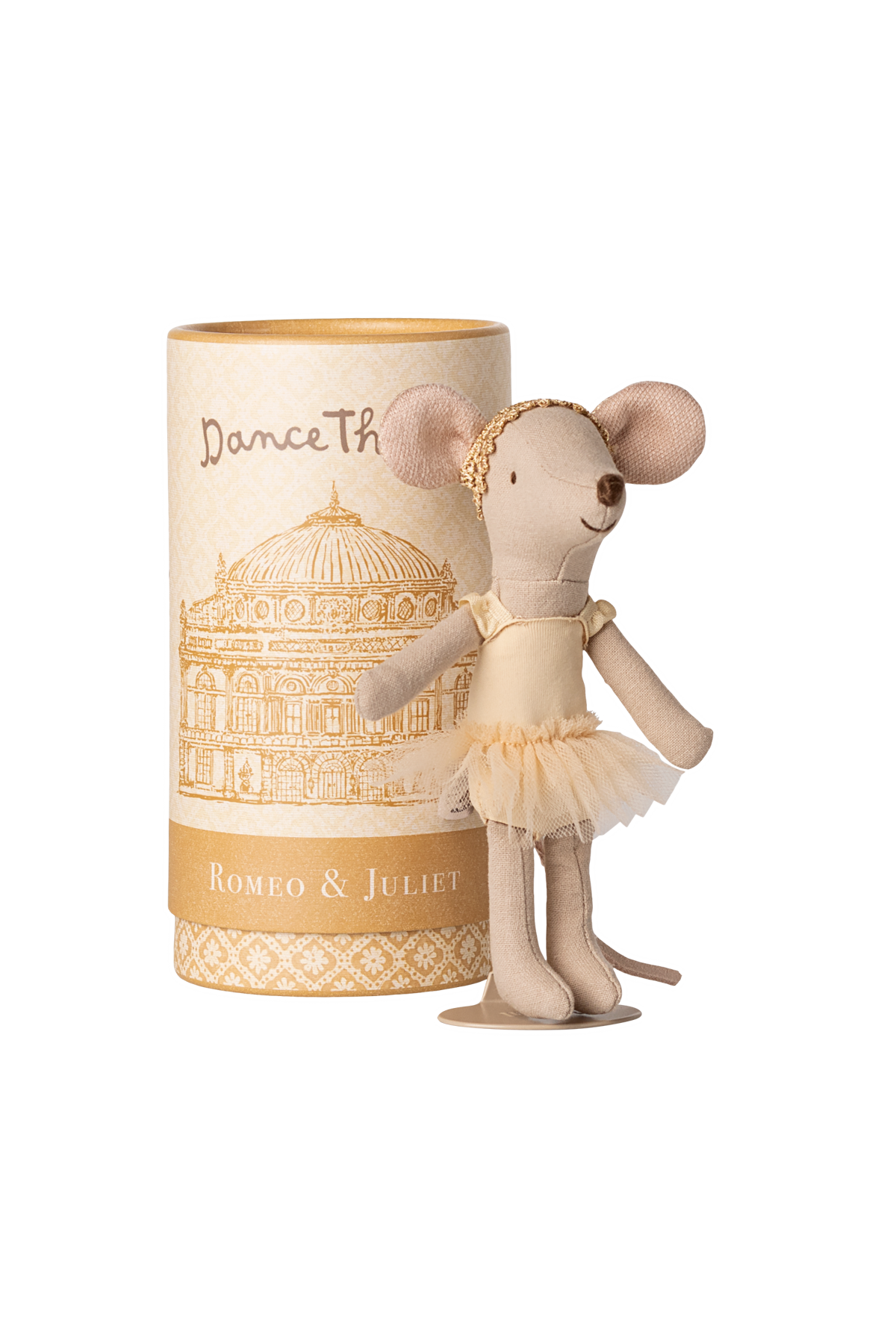 Laat de dromen van je kind tot leven komen met de Maileg Balletdanseres muis, Grote Zus! Deze charmante ballerina muis is de ster van het podium, gekleed in een delicaat tutu en gouden tiara, klaar voor haar grote optreden in Romeo en Julia. Gemaakt van zacht katoen en metaal, is ze een betoverende toevoeging aan elk Maileg huis. Perfect voor kleine handjes om mee te spelen en stimuleert eindeloos fantasierijk spel vanaf 3 jaar. Dit liefdevolle speelgoed zal zeker een glimlach toveren!