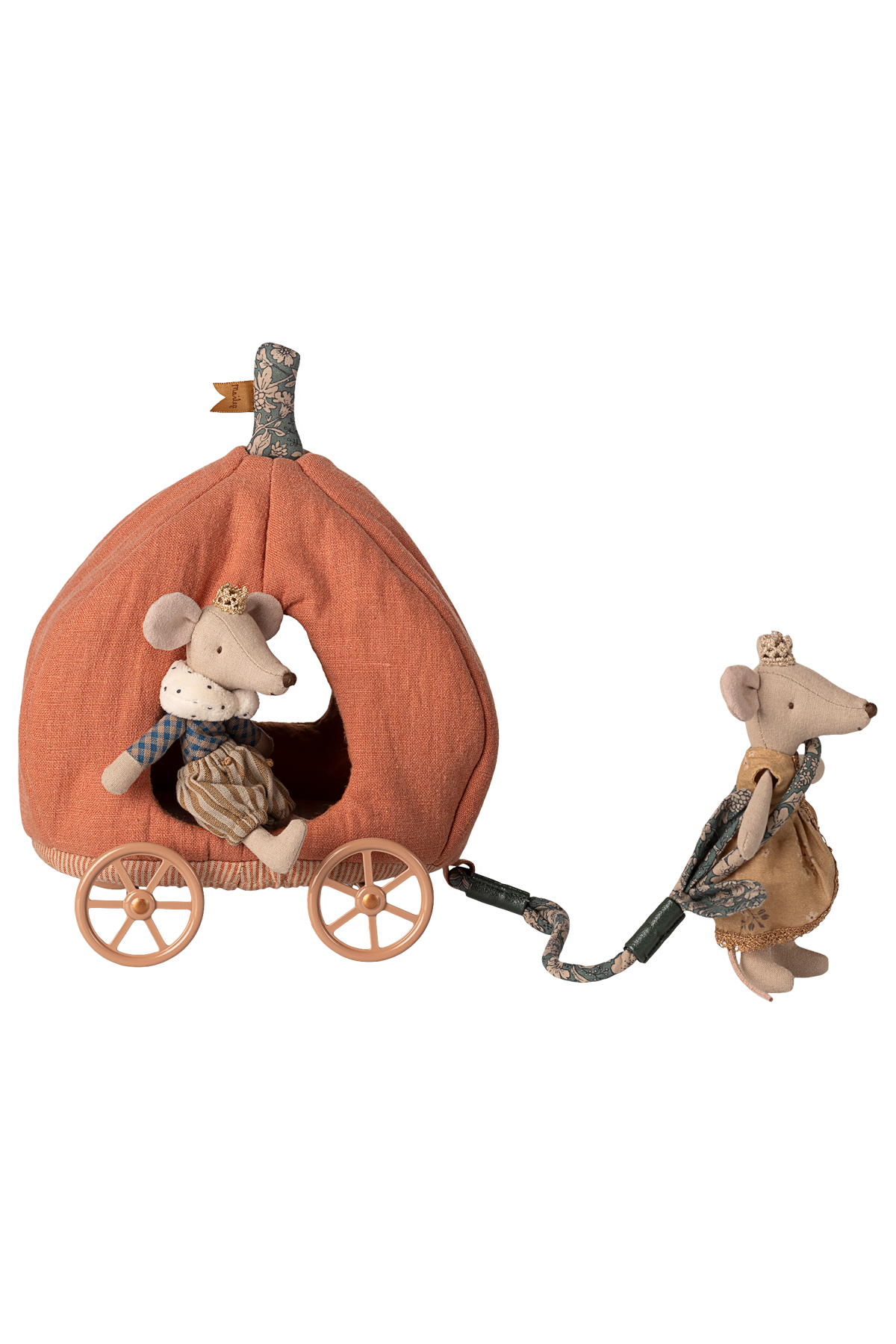 Laat de sprookjes tot leven komen met de Maileg Pompoenkoets, Muis! Dit betoverende wagentje is perfect voor de koninklijke muizenfamilie en zorgt voor magische avonturen buiten het kasteel. Met prachtige details en gemaakt van duurzaam katoen, linnen, hout en metaal, brengt het een vleugje fantasie naar elke speeltijd. Ideaal voor kinderen vanaf 3 jaar om hun eigen sprookjes te creëren.