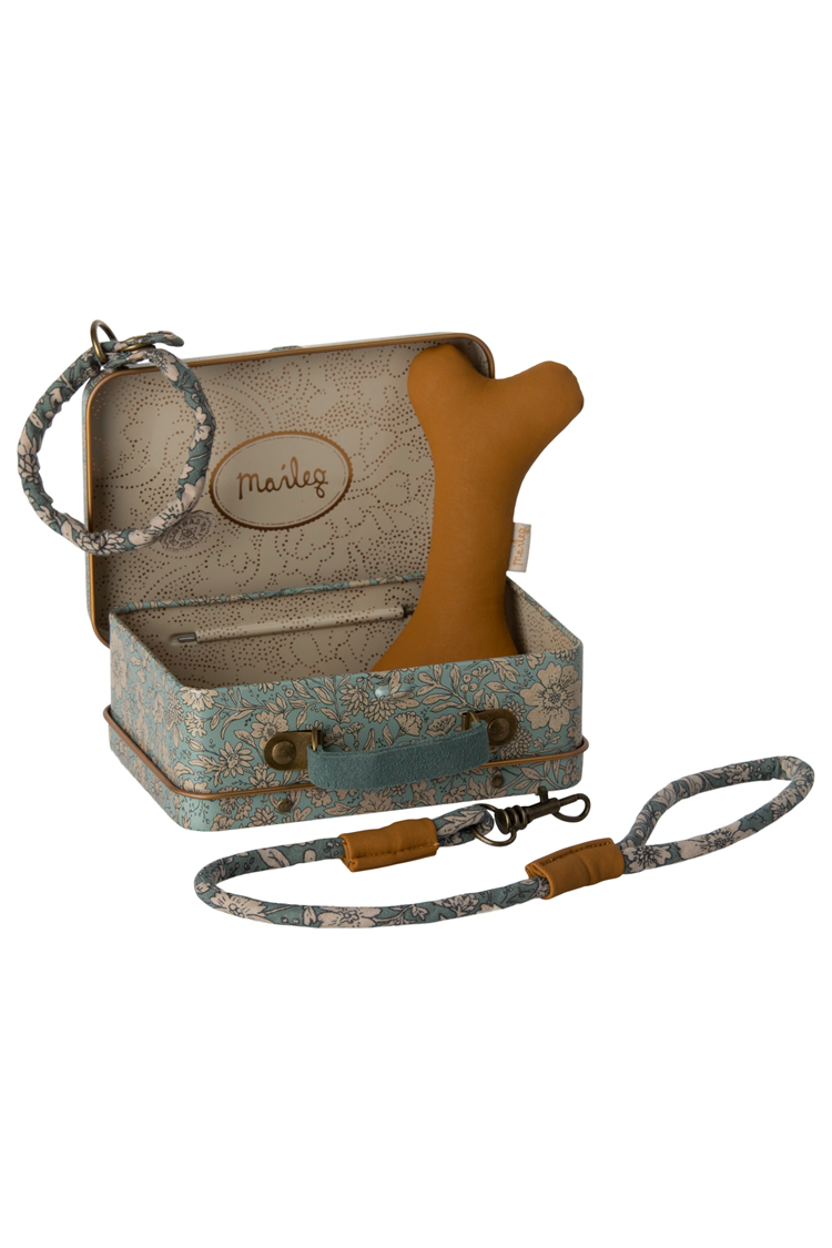 Laat je kleintje zorgen voor hun Maileg puppy met deze schattige blauwe accessoires set! Gemaakt met de bekende Maileg charme en oog voor detail, bevat deze set alles voor urenlang fantasierijk speelplezier. Van een knus mandje tot een vrolijk speeltje, je kind kan hun dierenvriendje liefdevol verzorgen. Stimuleer rollenspellen en creativiteit met dit duurzame en lieve speelgoed, perfect voor kleine handjes en grote avonturen.