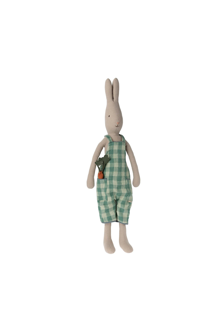 Laat je kleintje kennismaken met de schattige Maileg Rabbit Size 3, Overall Carrot! Dit lieve konijntje draagt een charmante tuinbroek en heeft een zachte wortel in zijn zak. Met zijn zachte linnen materiaal is hij perfect om mee te knuffelen. Dit handgemaakte vriendje van 25 cm lang is ideaal voor fantasierijk spel en stimuleert de creativiteit van je kind. Een tijdloze toevoeging aan elke kinderkamer, gemaakt met oog voor detail en kwaliteit waar Maileg om bekend staat. Geschikt voor alle leeftijden.