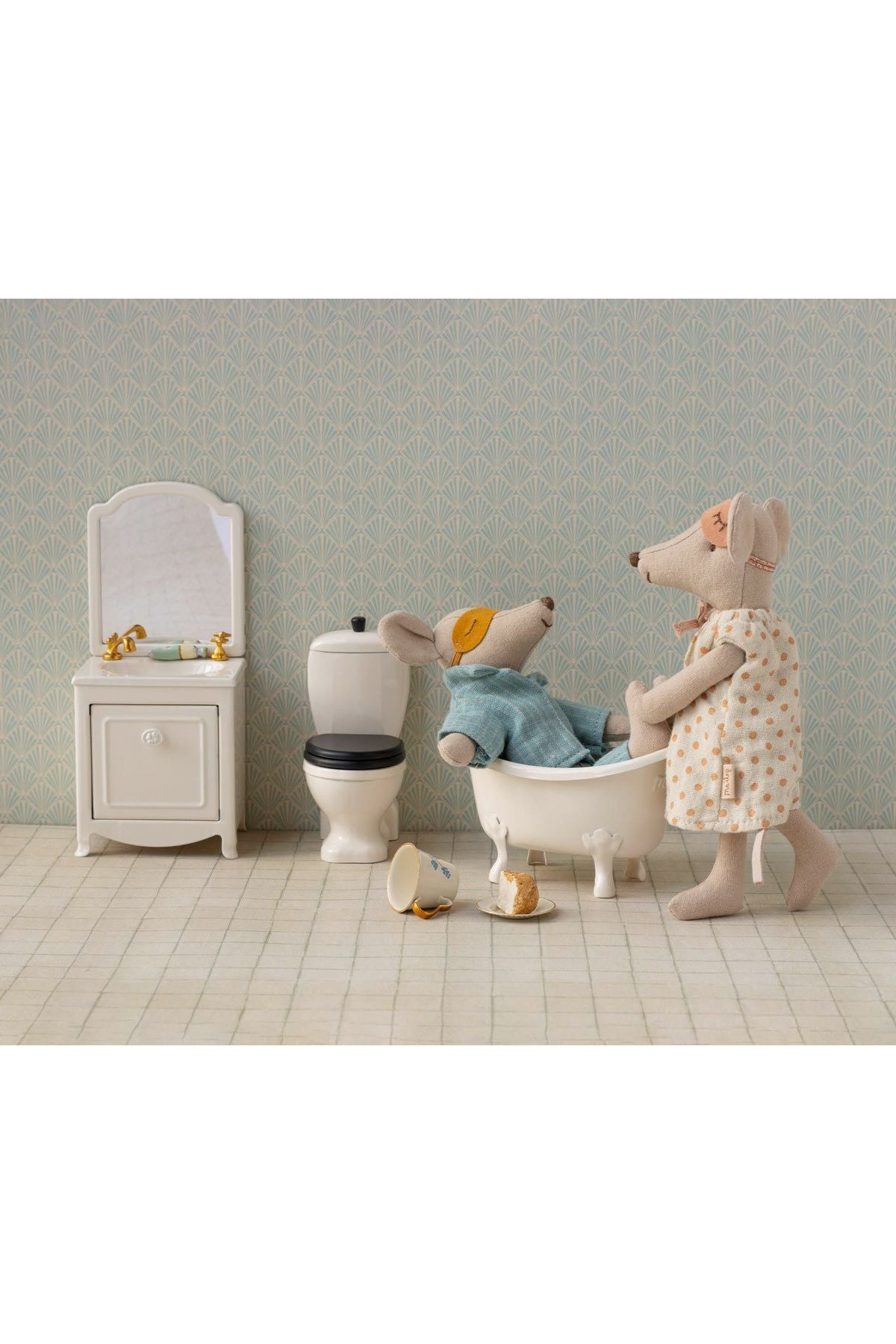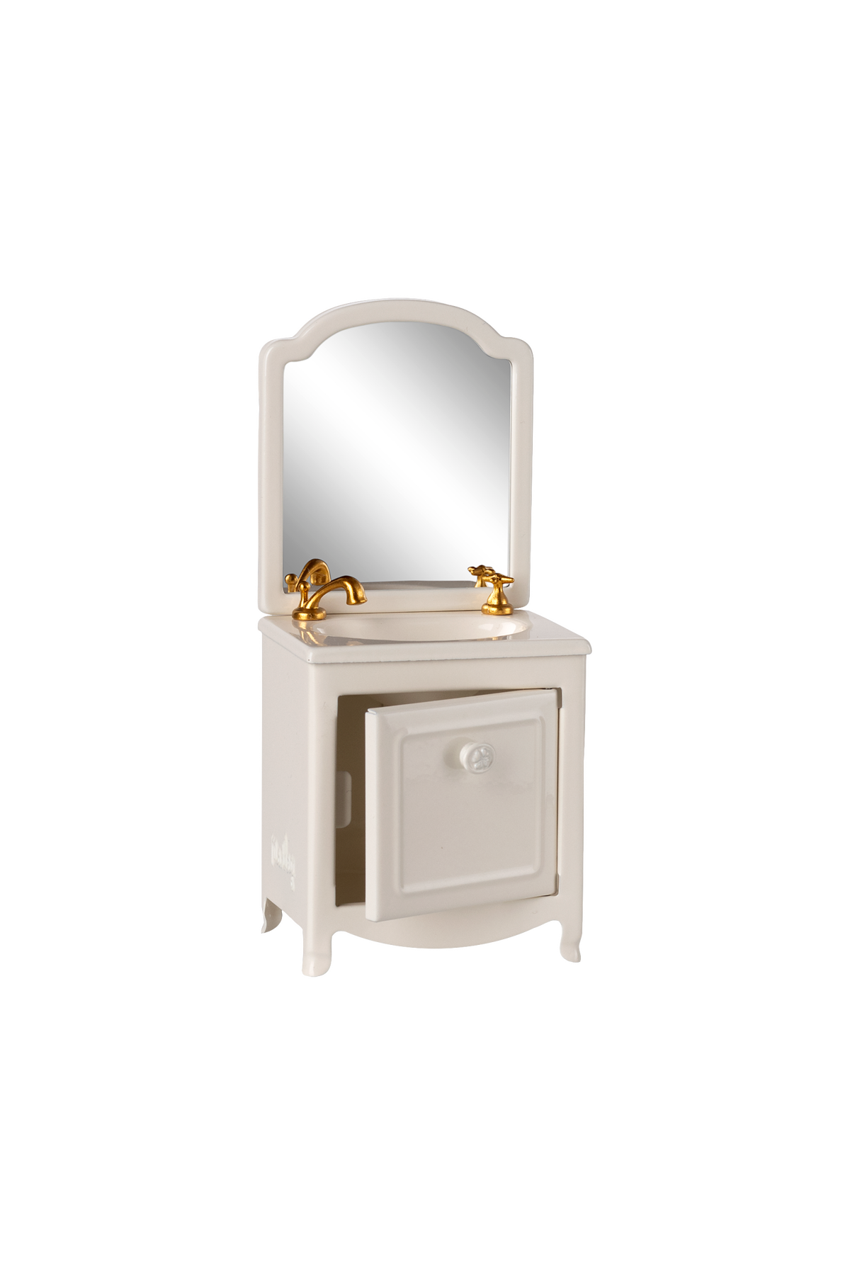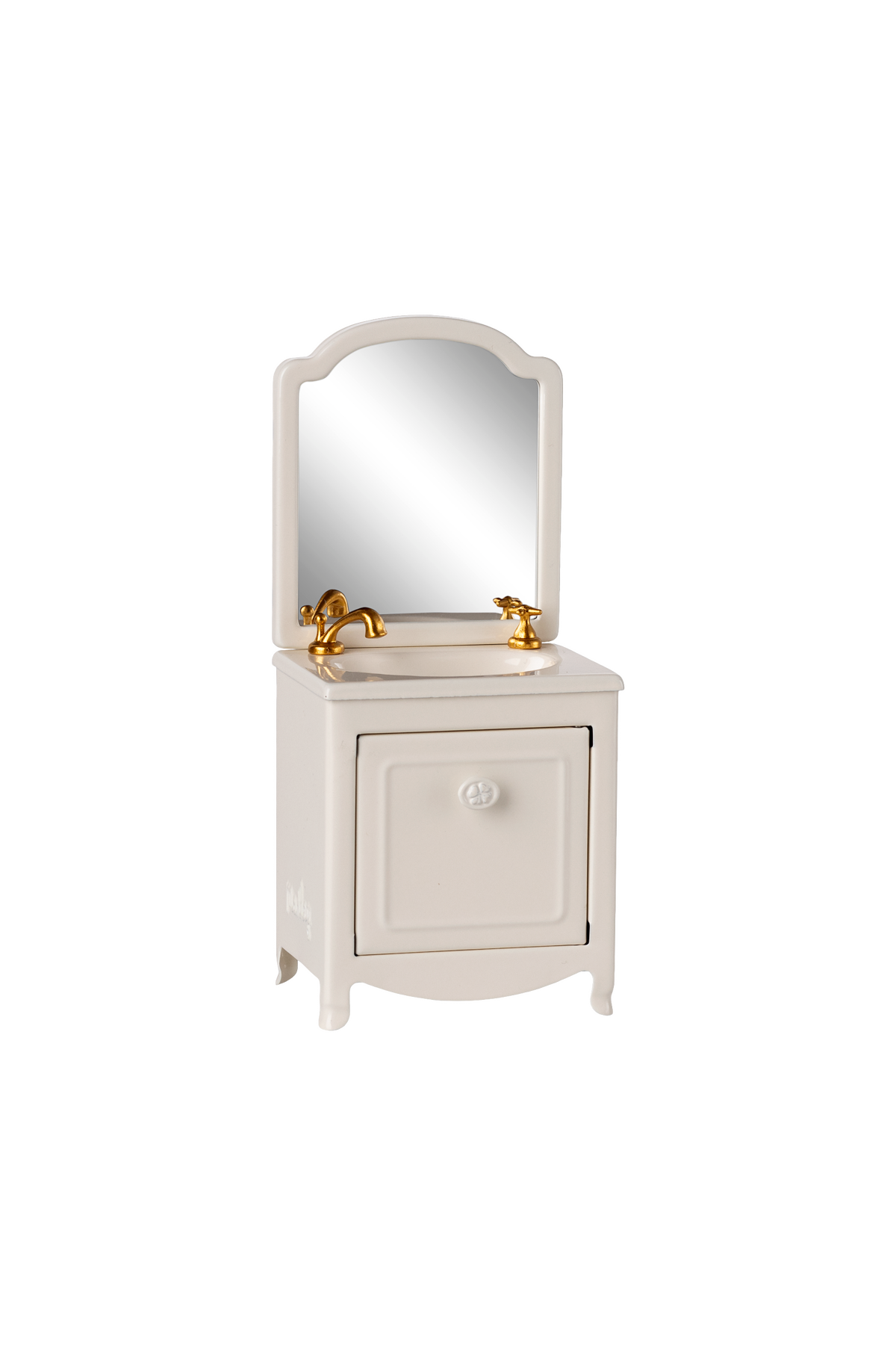 Laat de kleintjes spetterende avonturen beleven met de Maileg Wastafel met Kastje, Muis - Gebroken wit! Dit schattige wastafeltje is een onmisbaar item voor de badkamer in de Muizenboerderij. Met een handig kastje onder de wasbak en een spiegel, is het perfect voor urenlang fantasierijk speelplezier. Combineer met een Maileg toilet en badkuip voor nog meer pret! Maileg staat bekend om zijn charmante en gedetailleerde speelgoed dat generaties lang meegaat.