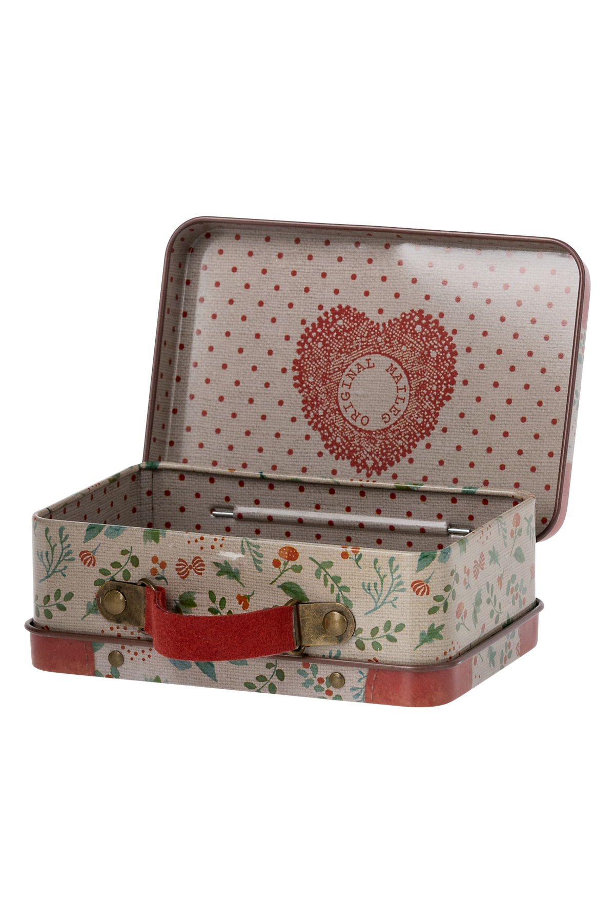 Ontdek de betoverende Maileg Metalen Koffer - Holly! Dit schattige koffertje is perfect voor alle reislustige Maileg muizen en konijnen, of gewoon om kleine schatten in op te bergen. Gemaakt met de kenmerkende Maileg charme, nodigt het uit tot urenlang fantasierijk speelplezier. Een prachtig cadeau om de creativiteit van je kindje te stimuleren en een vleugje magie toe te voegen aan elke kinderkamer! Geschikt voor alle leeftijden.