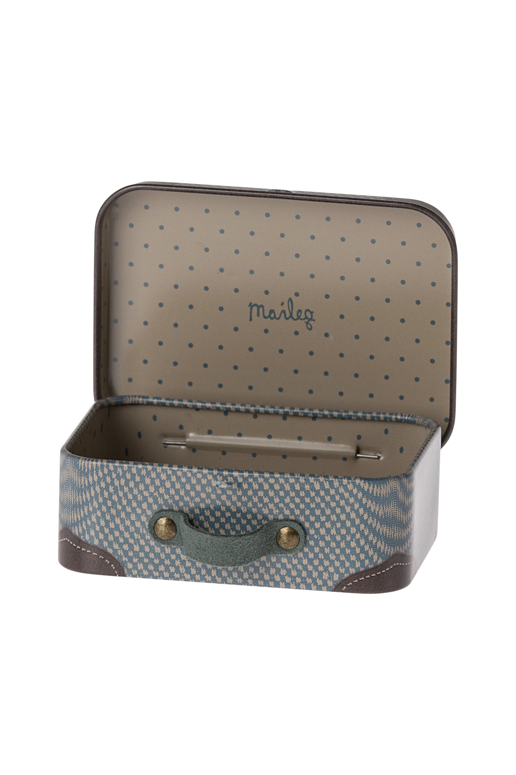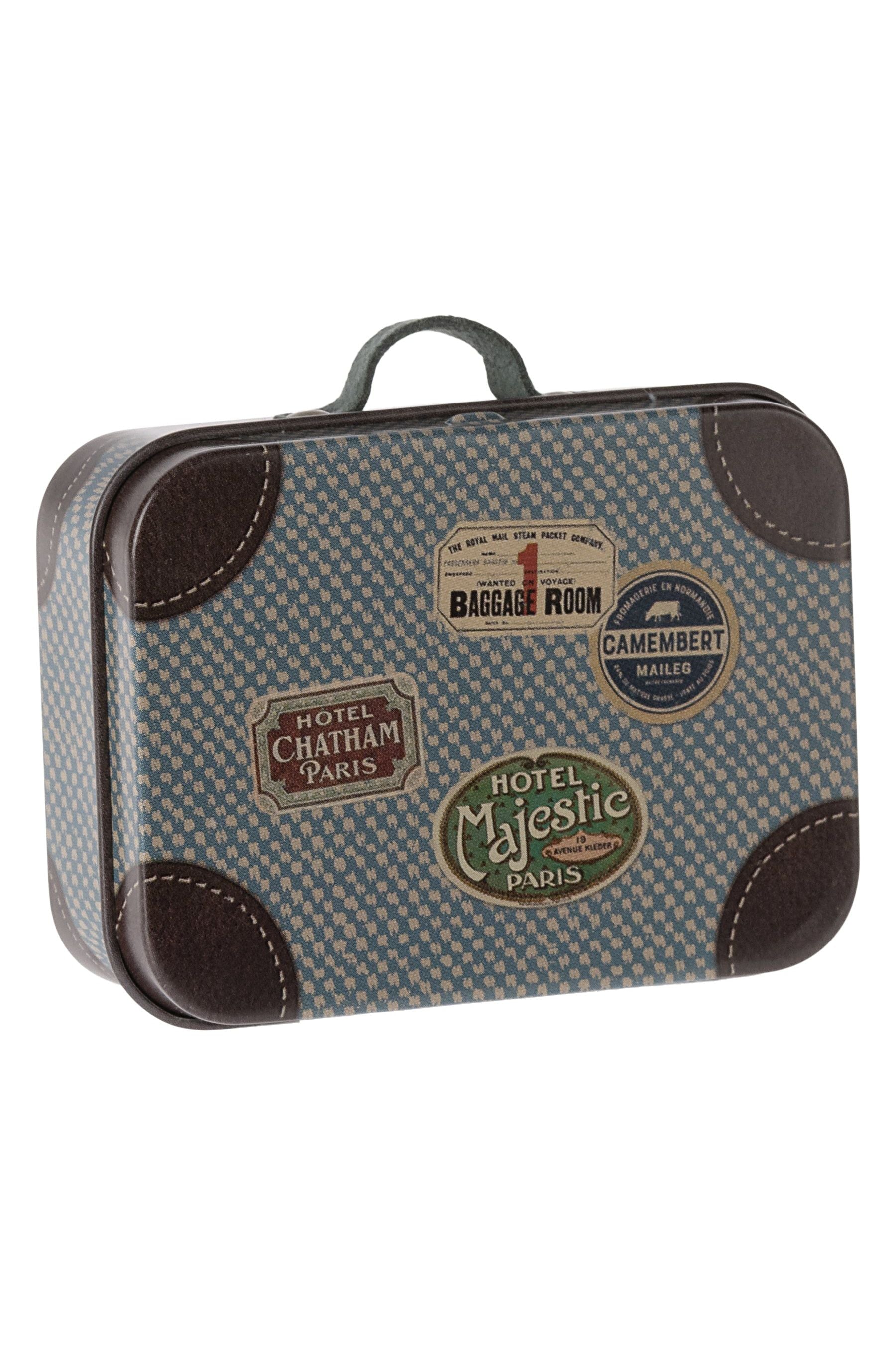 Laat de fantasie van je kind tot leven komen met de Maileg Micro Koffer in vrolijk blauw! Dit schattige metalen koffertje is perfect voor kleine cadeautjes, het opbergen van mini-schatten of voor Maileg muisjes en konijntjes om hun spulletjes overal mee naartoe te nemen. De kleurrijke illustraties en lieve details maken het een feestje om mee te spelen. Een betoverende toevoeging voor elk avontuur!