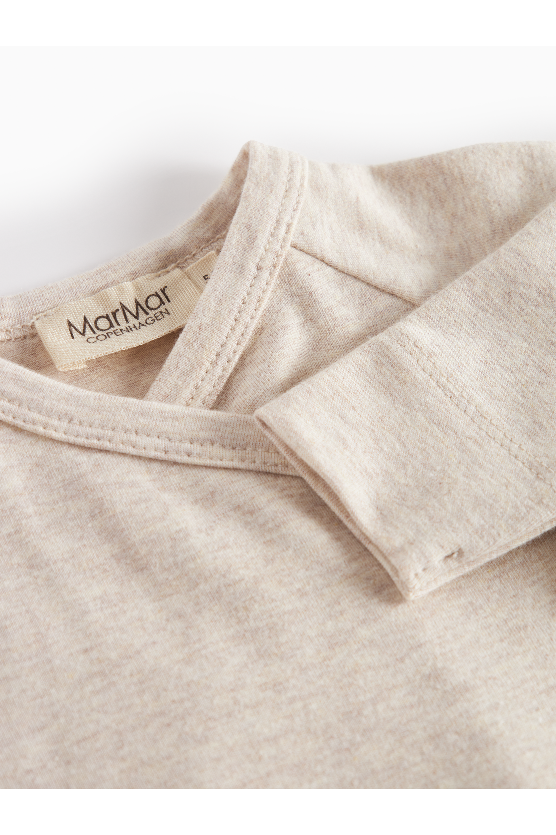 Zeg hallo tegen het schattige Rubetta Modal New Born pakje van MarMar Copenhagen in de zachte Light Beige Melange! Dit heerlijke boxpakje is perfect voor de allerkleinsten. Gemaakt van een superzachte mix van modal en biologisch katoen met een beetje stretch, voelt het als een knuffel voor de gevoelige babyhuid. Ideaal voor slapen, spelen en veel lieve babykiekjes. Een must-have voor elke new born.