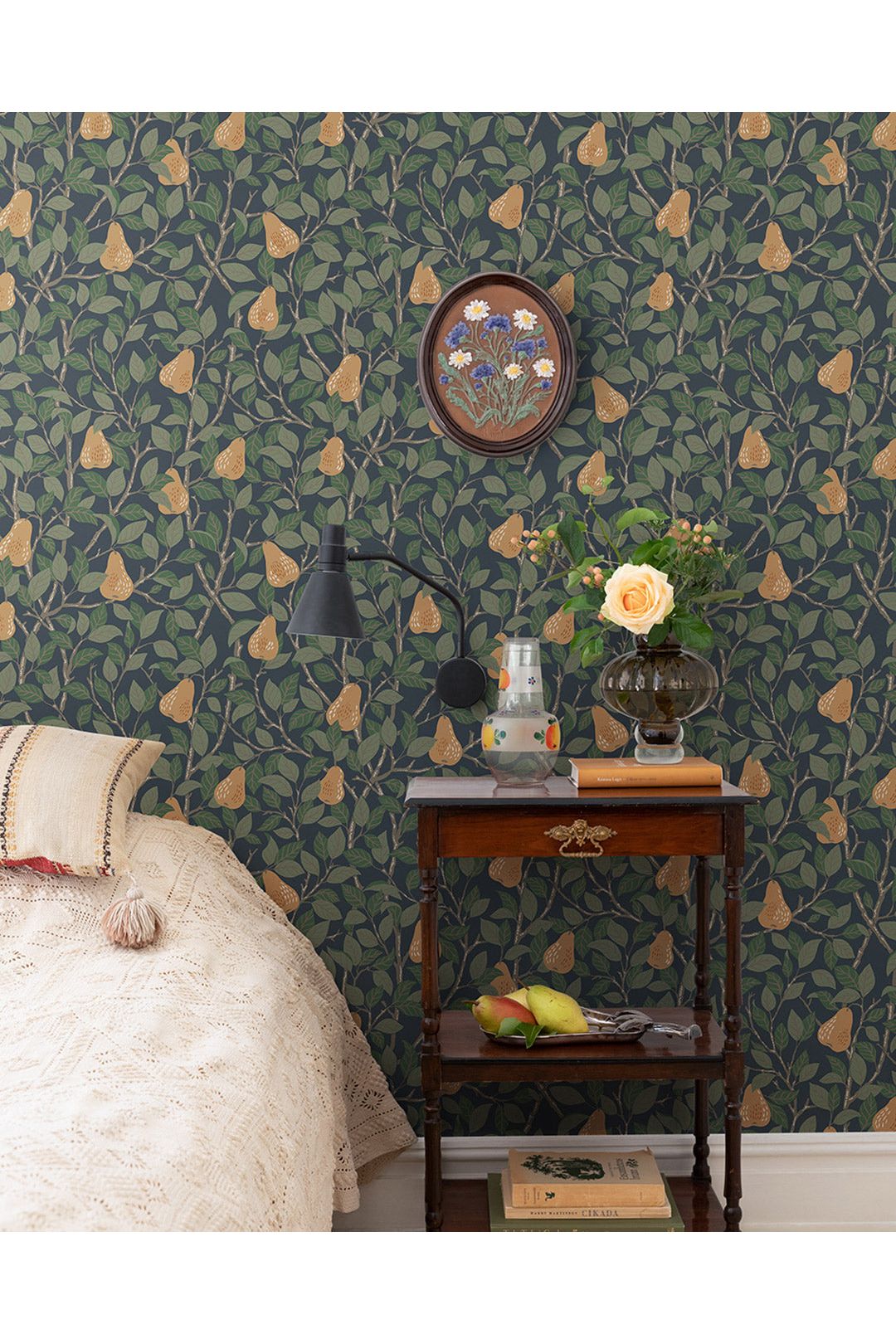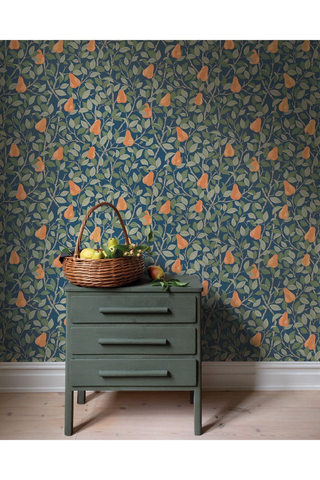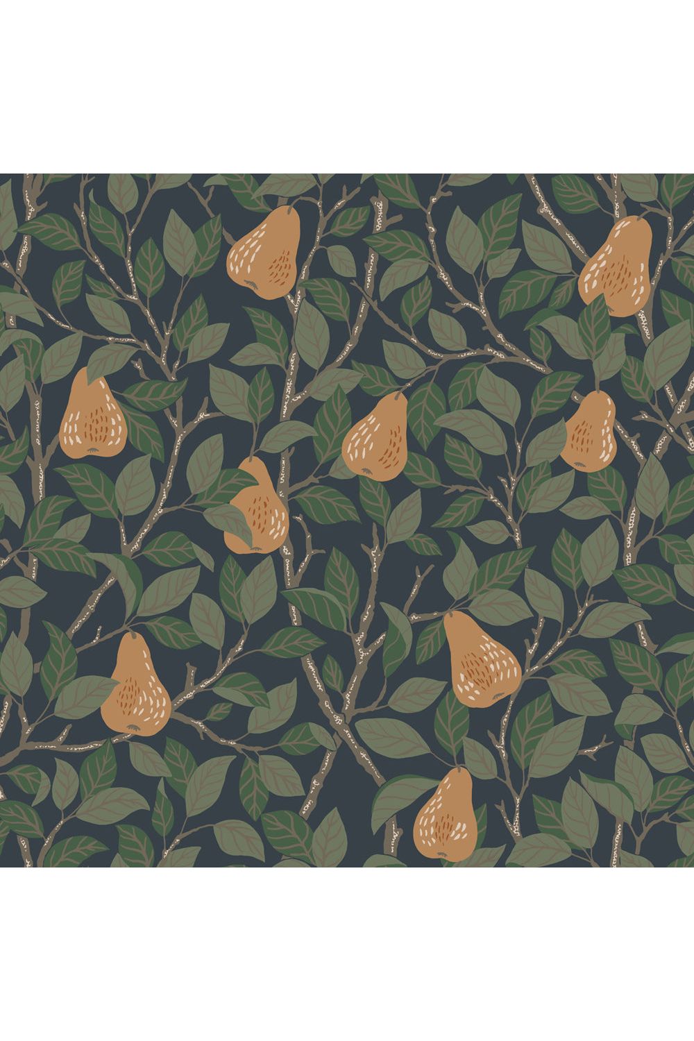 Deze Angas - Pirum - 13104 behangcollectie van Midbec is fantastisch voor de kinderkamer! Stel je voor: vrolijke lichtbruine peertjes met groene blaadjes dansen op een donkerblauwe achtergrond. Het behang creëert een knusse sfeer en nodigt uit tot een feestje. Dit vliesbehang is ook nog eens super makkelijk aan te brengen. Een perfecte basis voor de speelkamer van jouw kleintje, met mooie, volle kleuren die nooit te druk zijn. Laat de fruitige fantasie beginnen!