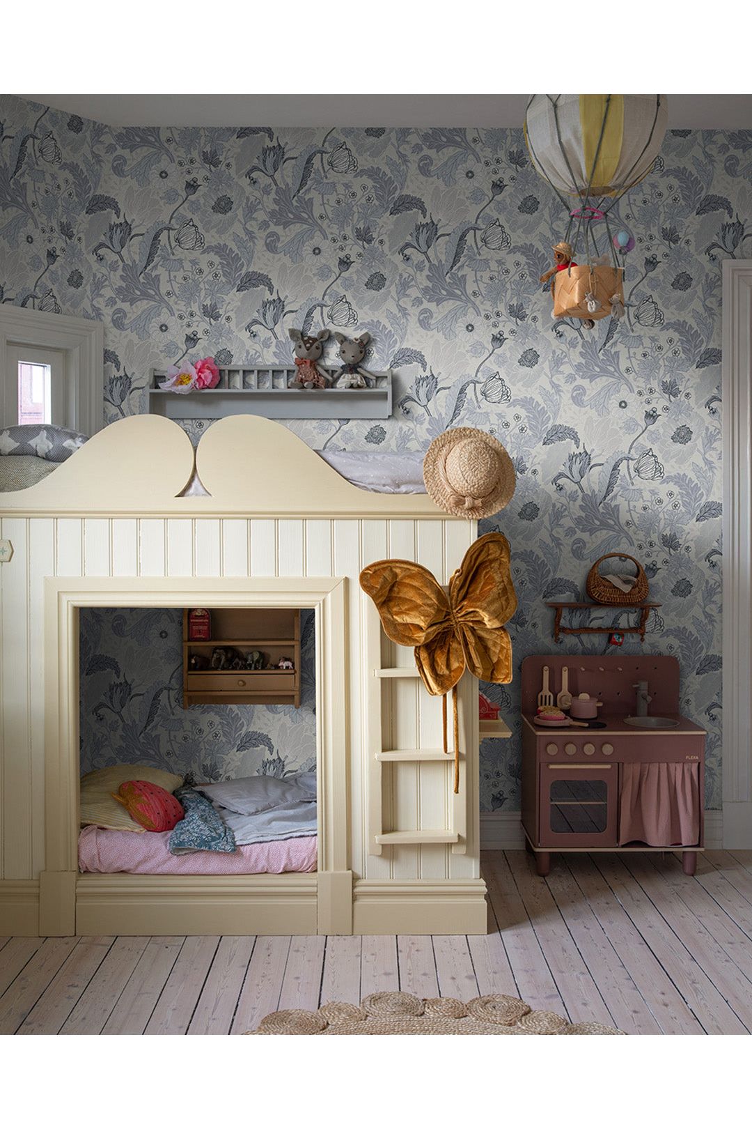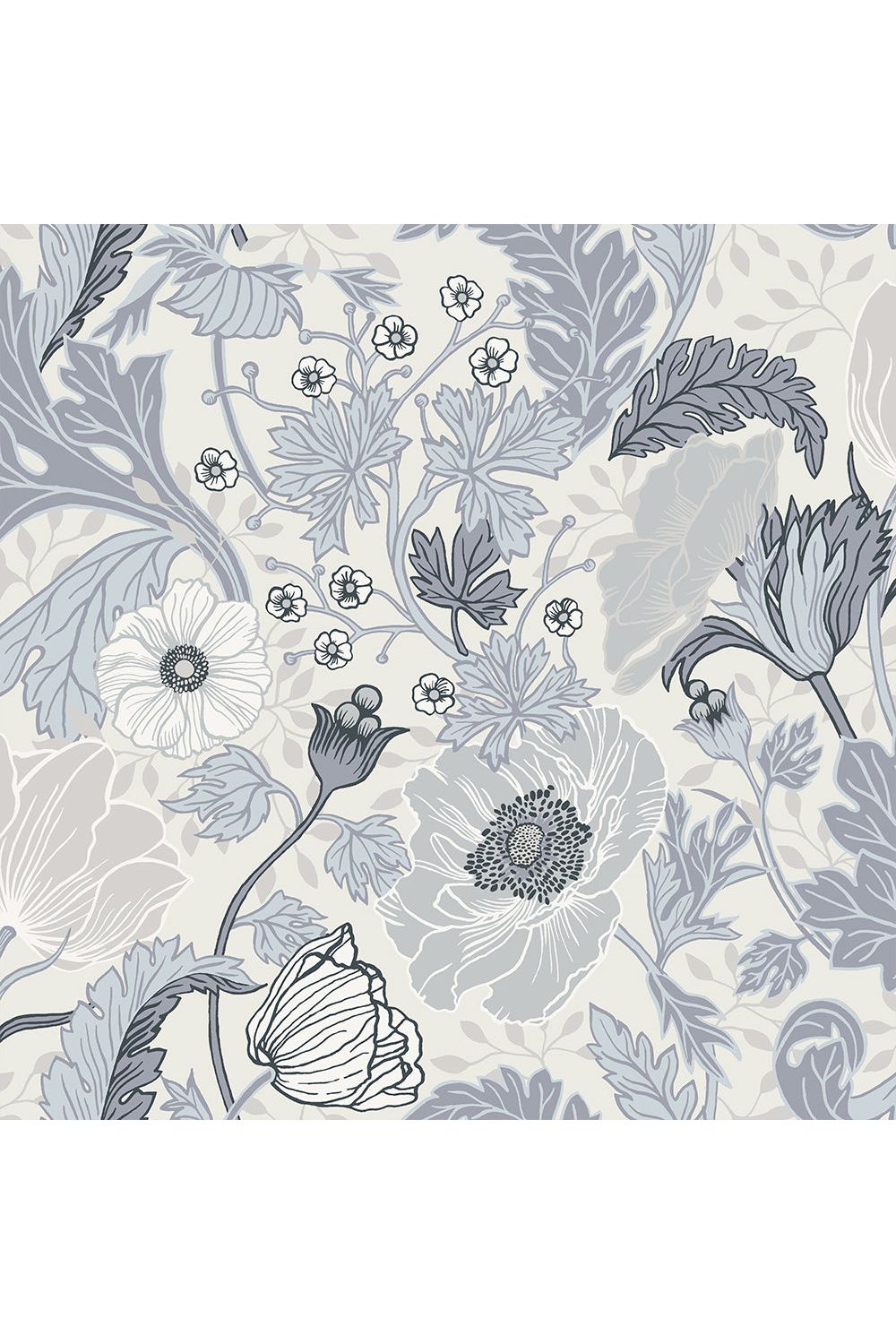 Breng een magische sfeer in de kinderkamer met dit betoverende Anemone behang van Midbec! De prachtige bloemen, als dansende klaprozen en vrolijke madeliefjes, creëren een gezellige plek vol zachte kleuren zoals wit, blauw en grijs. Het handgetekende patroon geeft een speelse diepte aan de muur, perfect om de fantasie van je kleintje te prikkelen. Een knusse en dromerige omgeving voor jouw kindje om heerlijk in te spelen en te slapen.