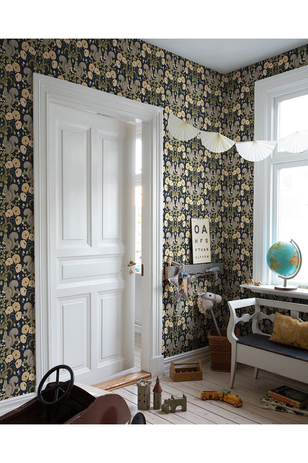 Breng de kinderkamer tot leven met het Midbec Gronhaga Anemone behang! Dit betoverende behang, met zijn speelse eekhoorns, vrolijke bloemen en ijverige hommels, creëert een inspirerende en rustgevende sfeer. De donkere ondergrond laat het bloempatroon in een fantastische gele tint stralen. Ontworpen door Hanna Wendelbo, is dit vliesbehang makkelijk aan te brengen. Perfect voor een dromerige baby- of kinderkamer waar fantasie de vrije loop kan gaan. Verkrijgbaar in meerdere kleuren.