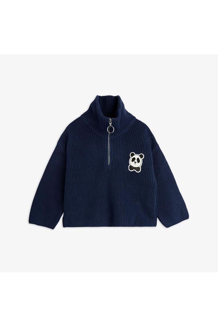 Panda Patch Chunky Knit Half Zip Sweater